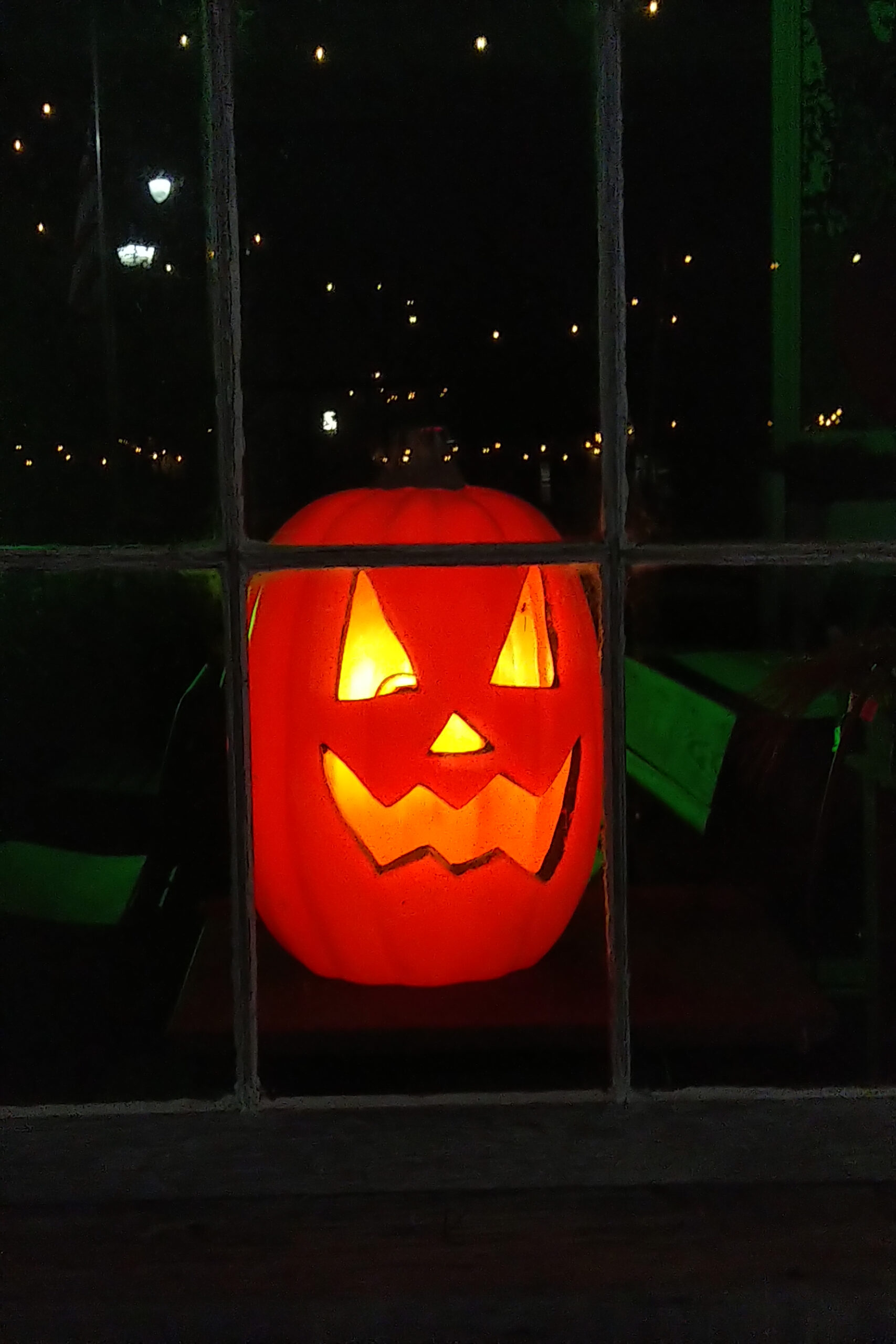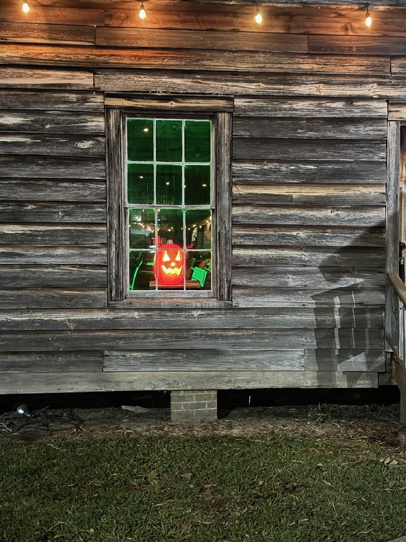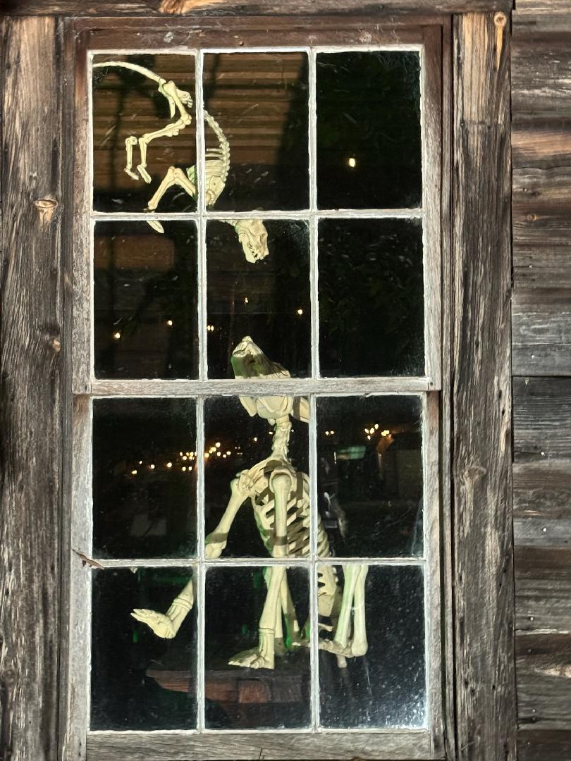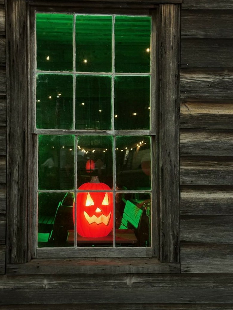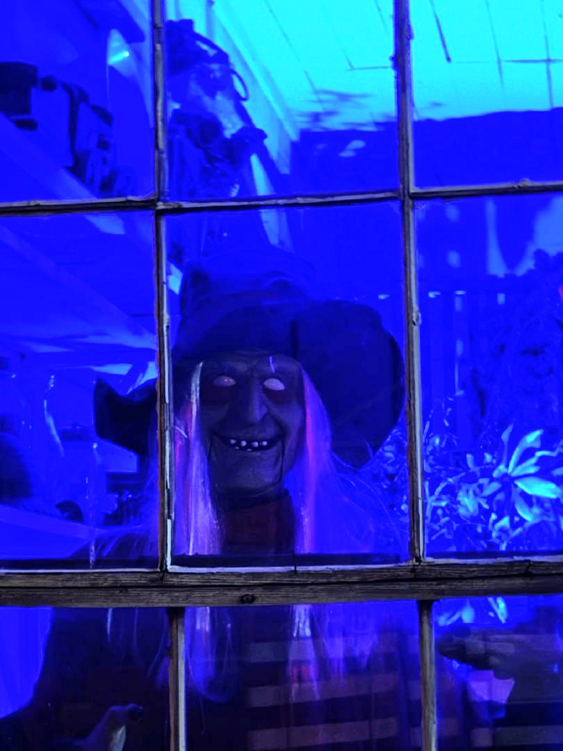 At night, downtown transforms to a beautiful Hallowe’en scene with lights, pumpkins, ghosts, skeletons, and even a witch peering out of the old post office.