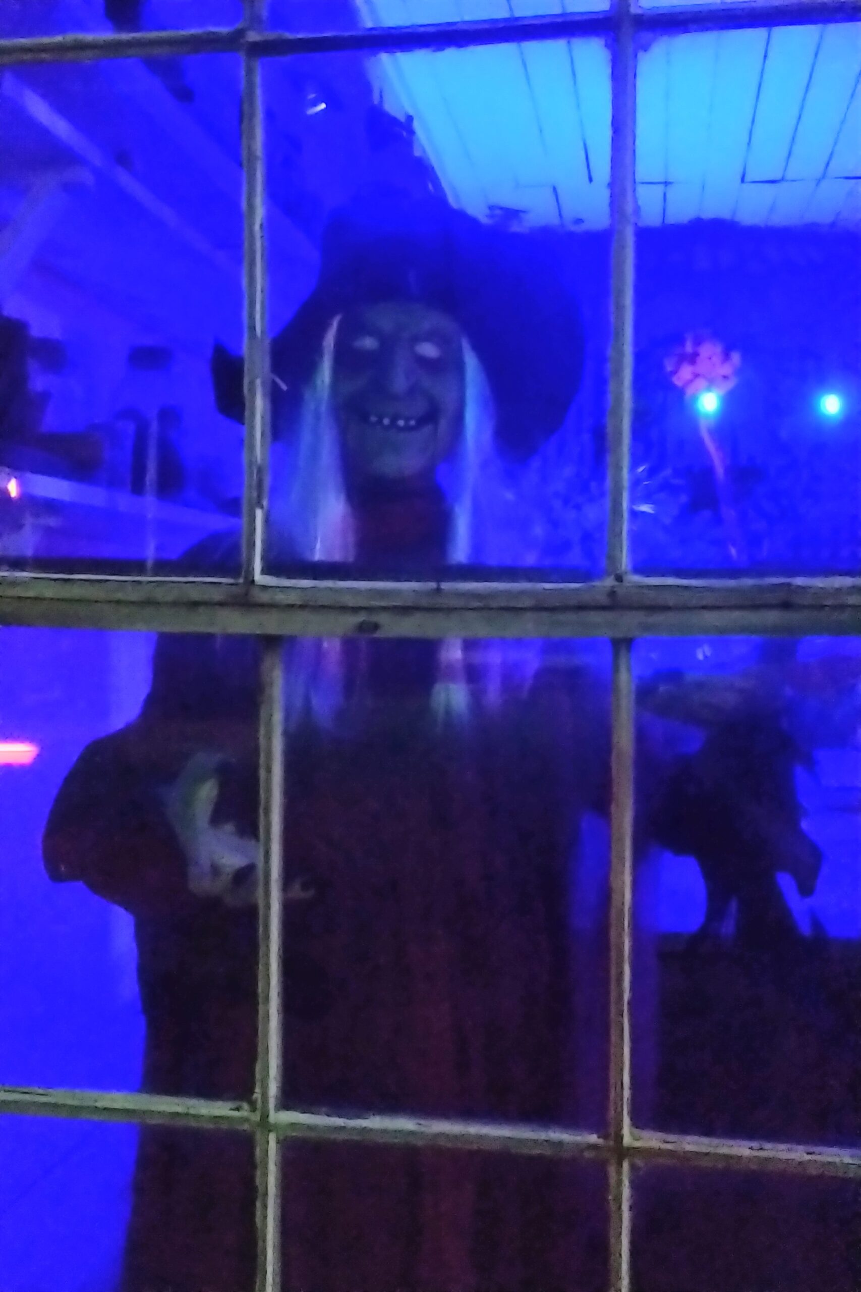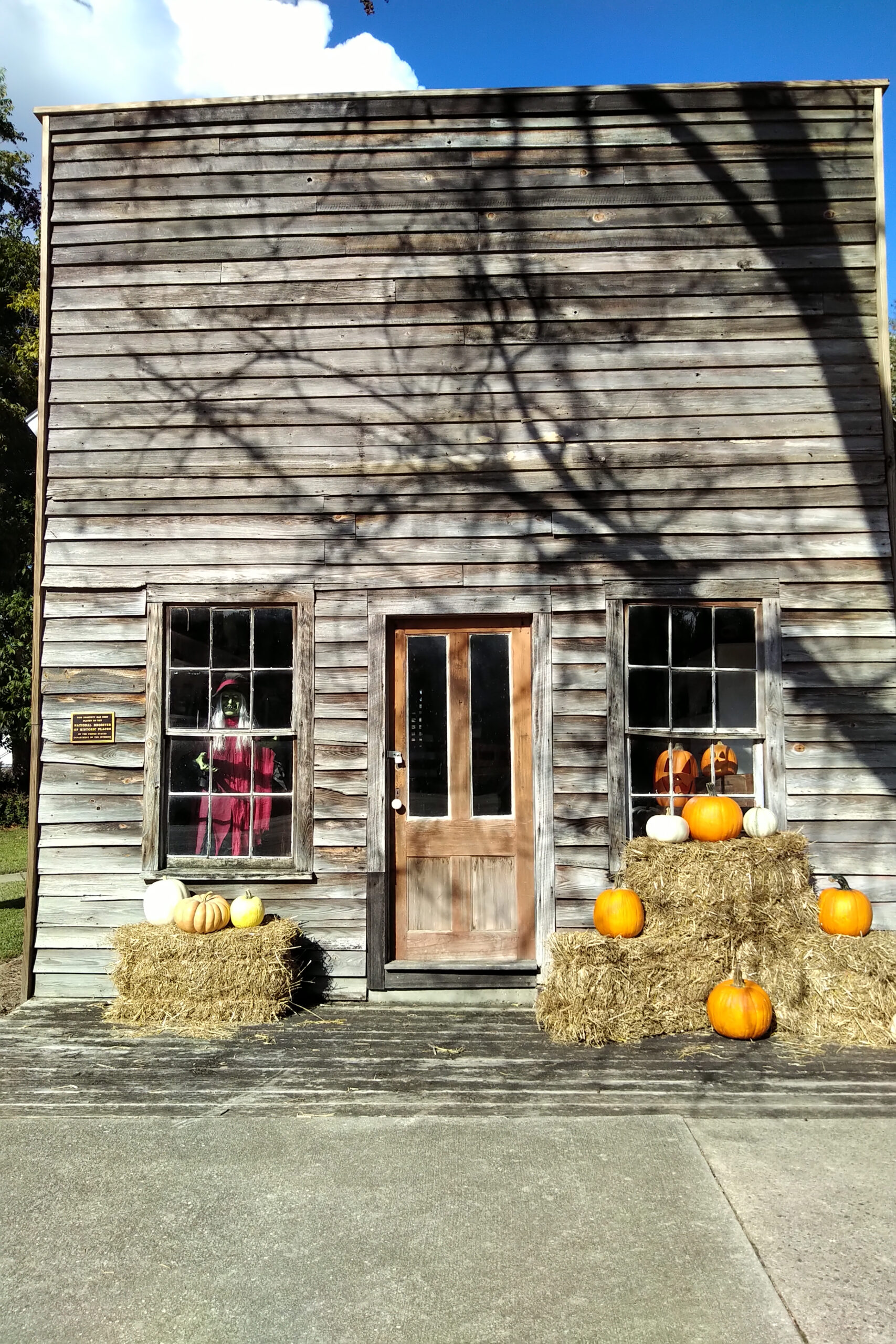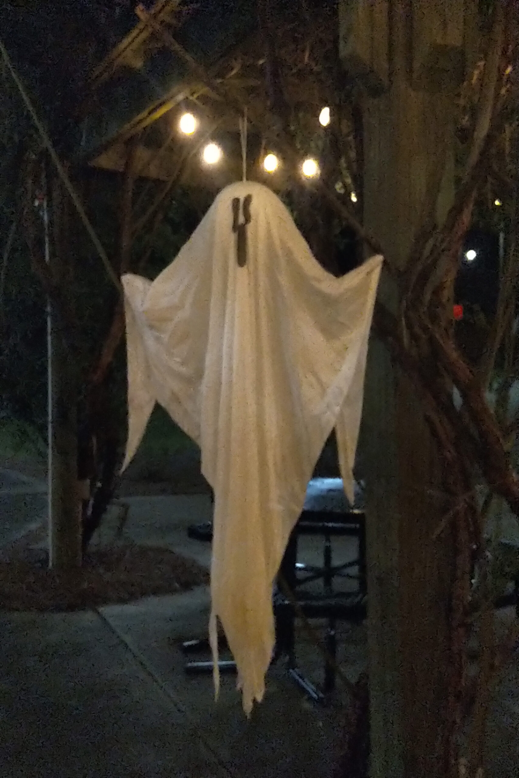 At night, downtown transforms to a beautiful Hallowe’en scene with lights, pumpkins, ghosts, skeletons, and even a witch peering out of the old post office.