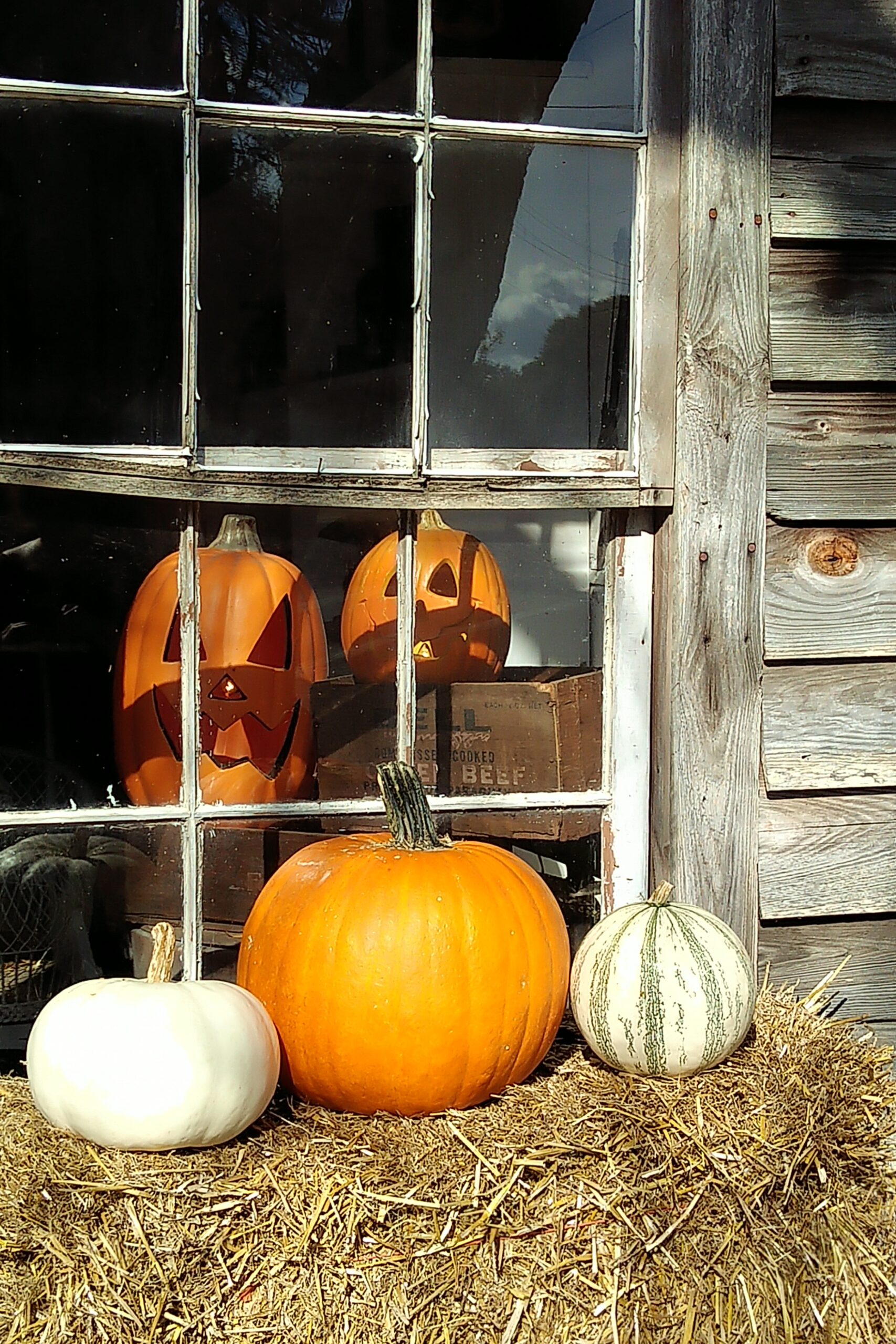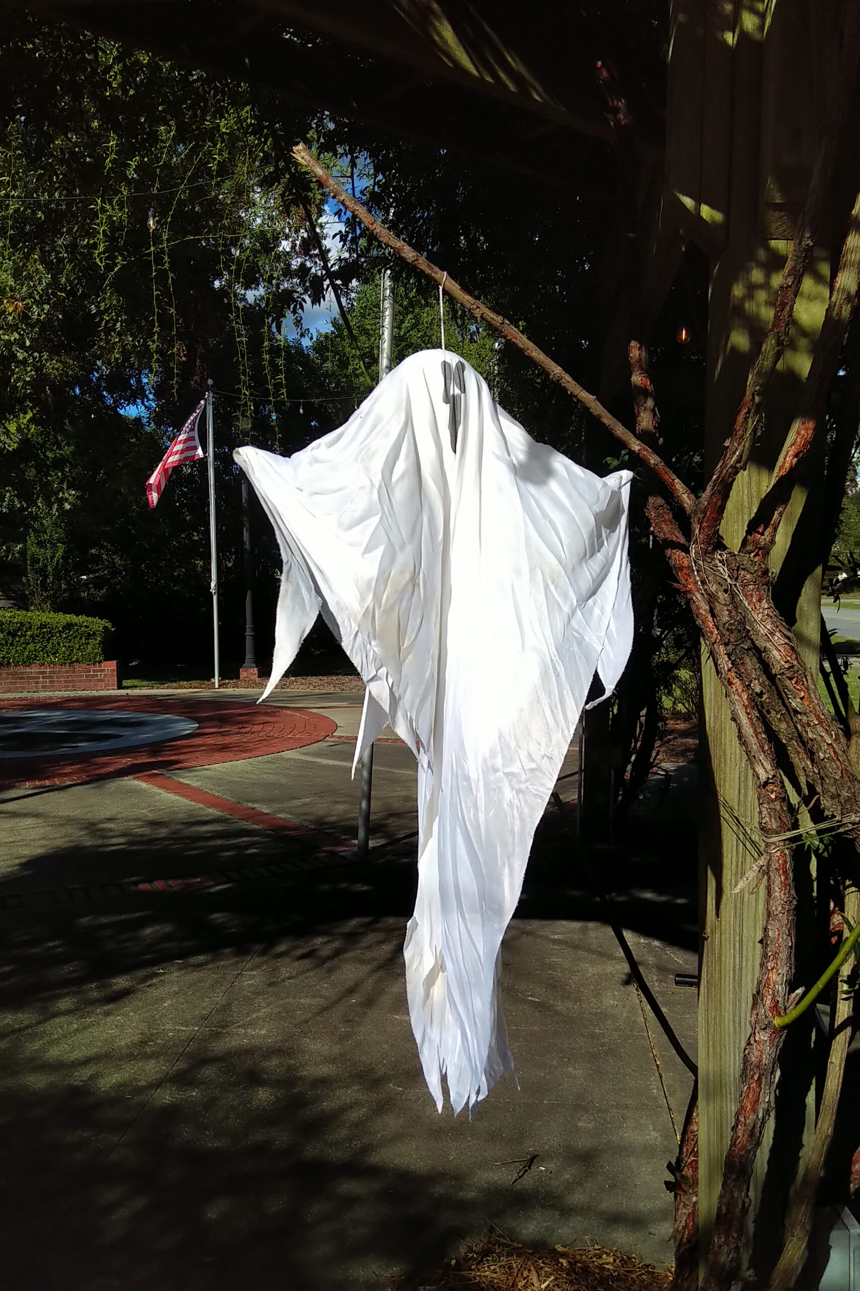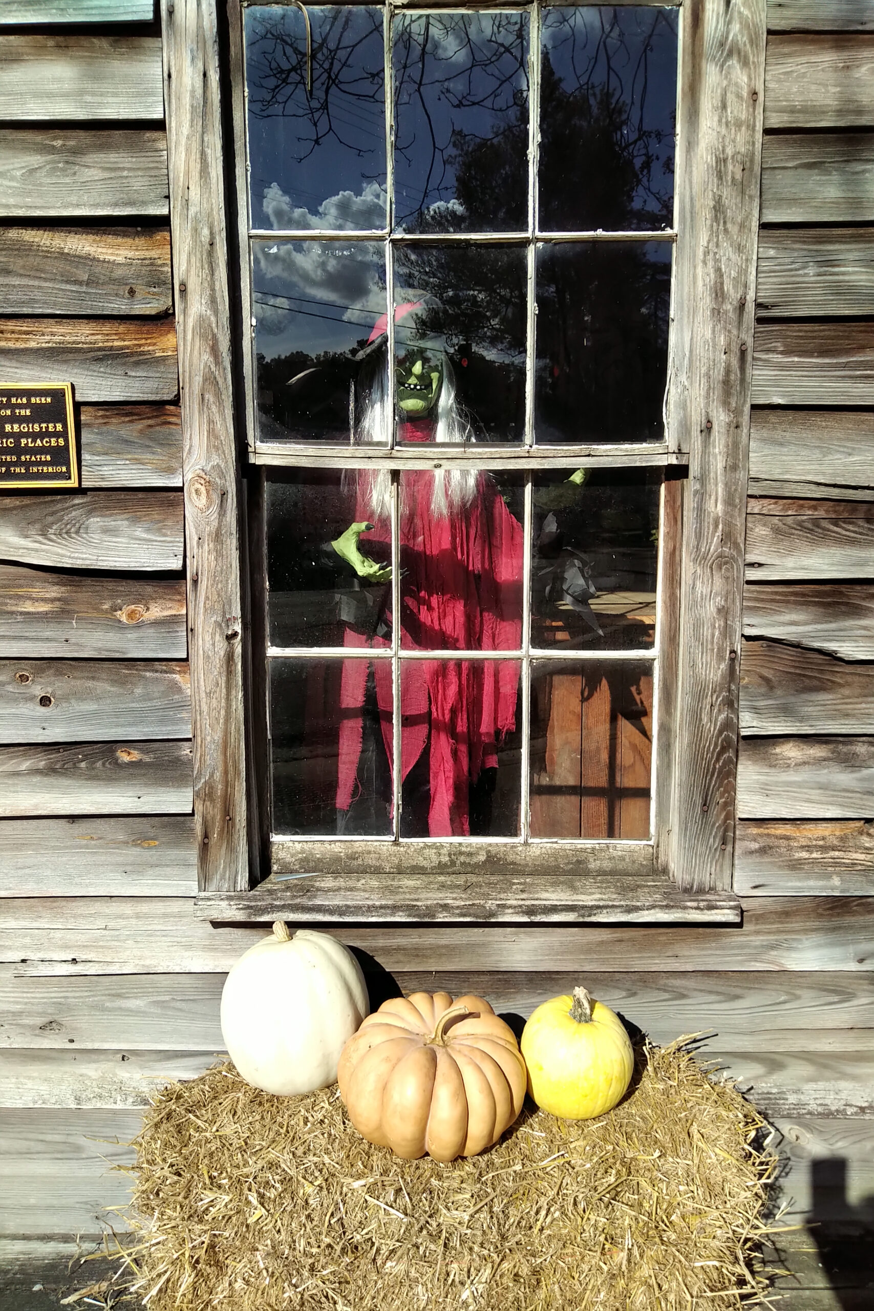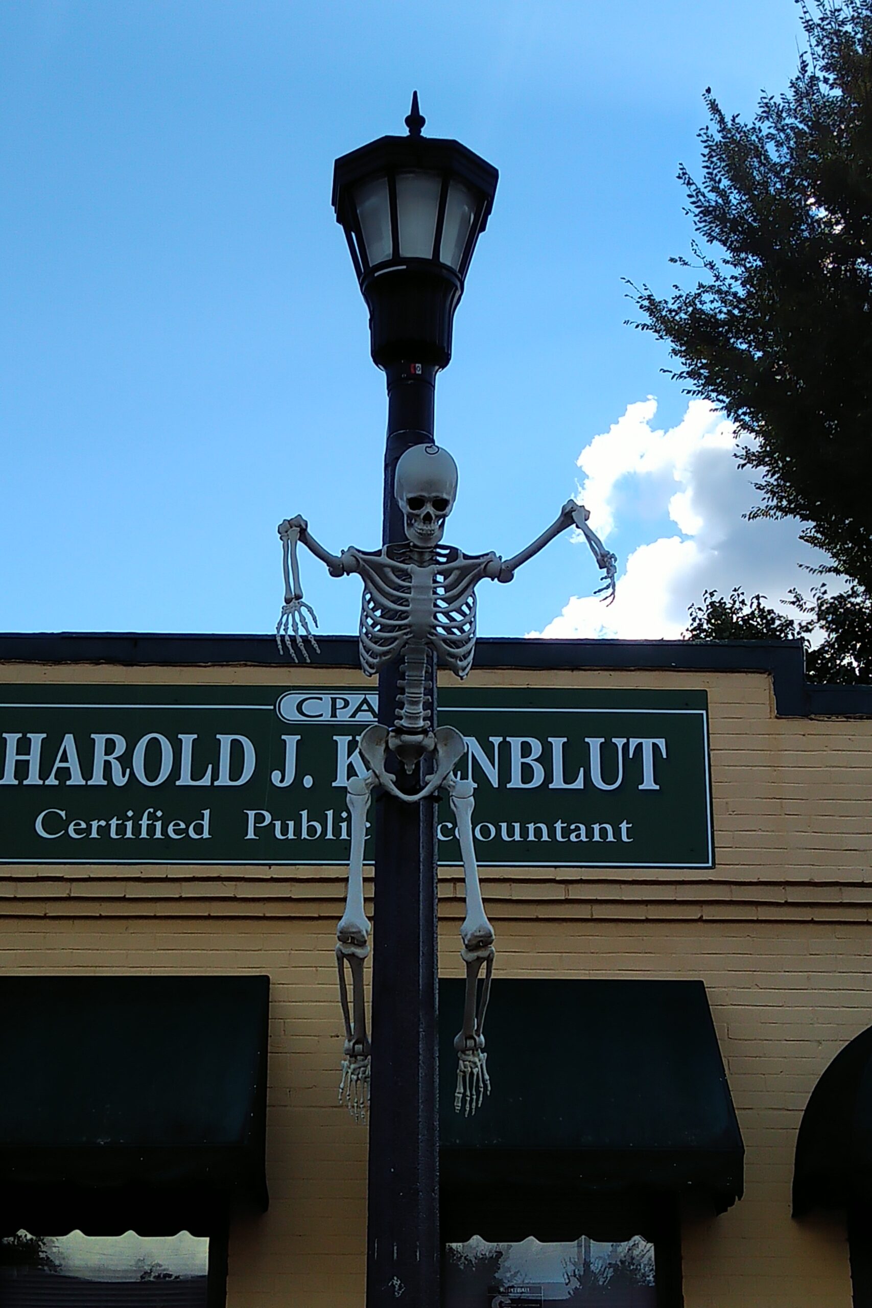 At night, downtown transforms to a beautiful Hallowe’en scene with lights, pumpkins, ghosts, skeletons, and even a witch peering out of the old post office.