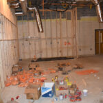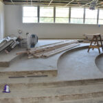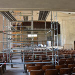 Work next to the stage in the old auditorium