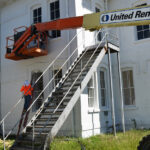 Workers on the outside of the West Elementary white building