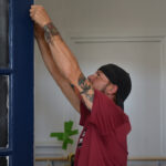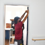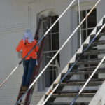 Justin Barklage of Columbia, S.C, working inside the West white building
