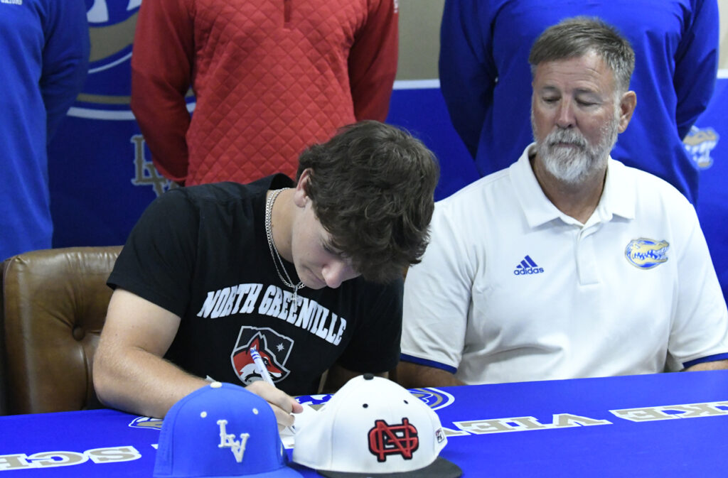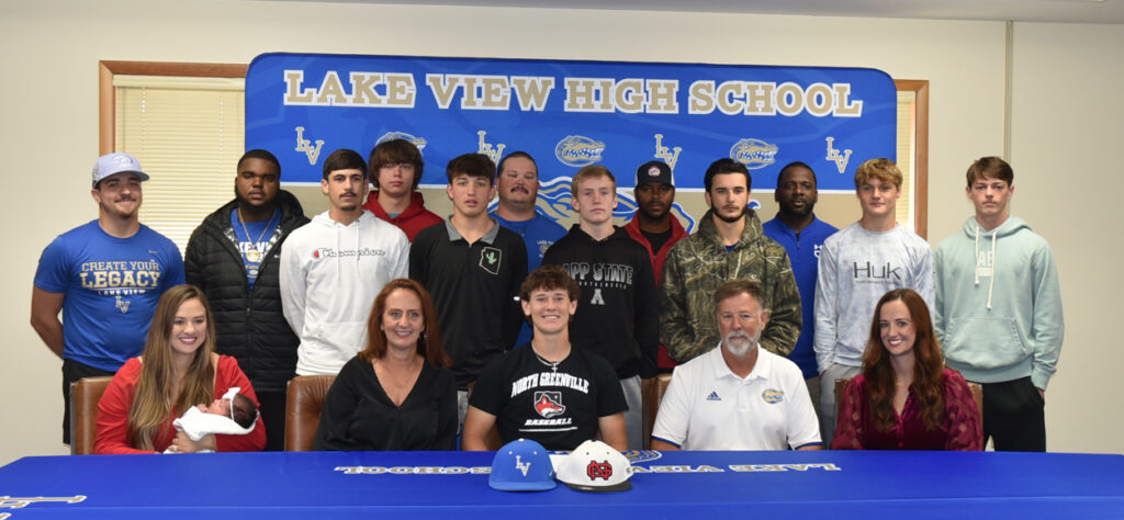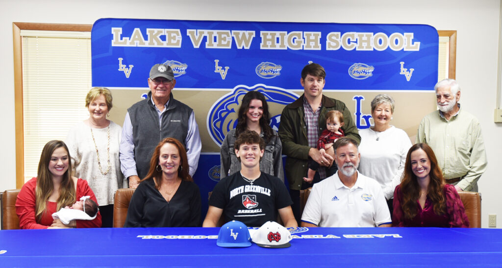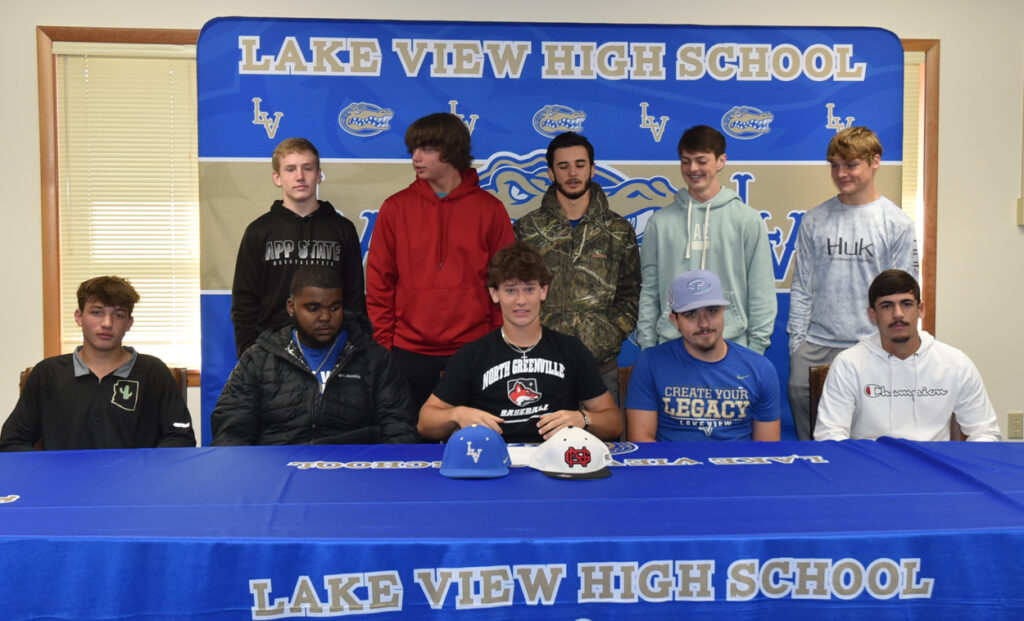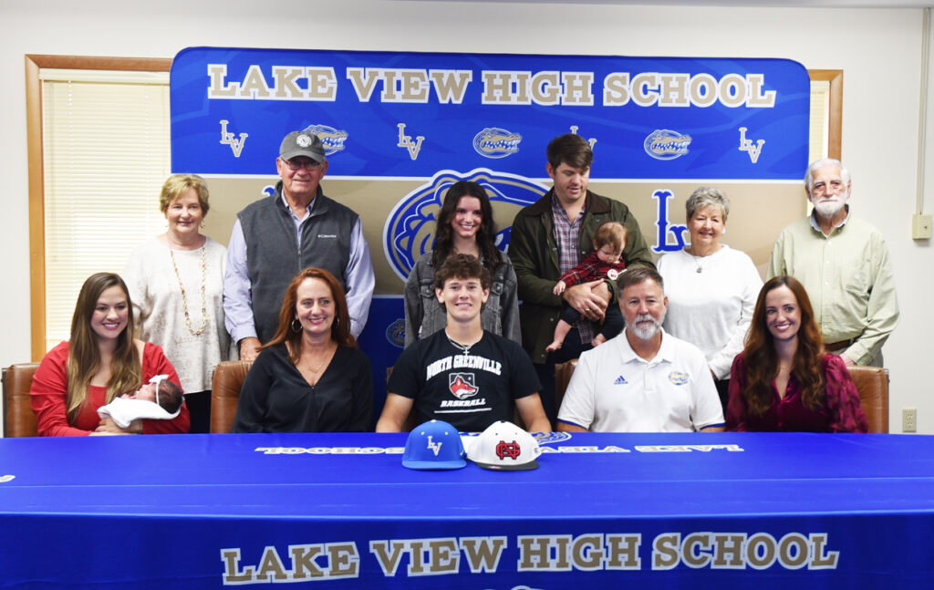 Kason Herlong signed with North Greenville University to continue to play baseball and receive a college education on Wednesday, November 13, at the Lake View High School Athletic Office in Lake View, S.C., with family, coaches, assistant athletic director, and friends.