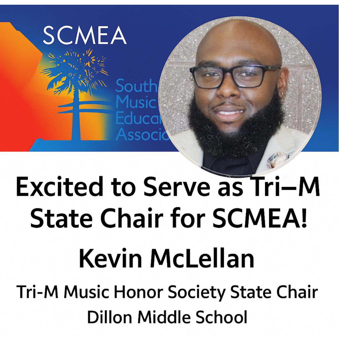 Kevin McLellan, Band director at Dillon Middle School, is stepping into the role of Tri-M Music Honor Society State Chair for the South Carolina Music Educators Association (SCMEA).