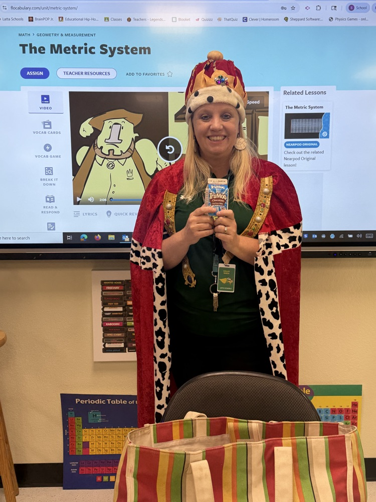 King Henry visited Mrs. Marsh’s 7th grade Science classes at Latta Middle School as they participated in various Metric Week activities.