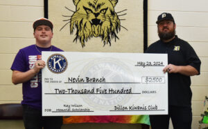 The Dillon Kiwanis Club presented Nevin Branch with a $2,500.00 Ray Wilson Memorial Scholarship on Thursday, May 23, at Dillon High School.