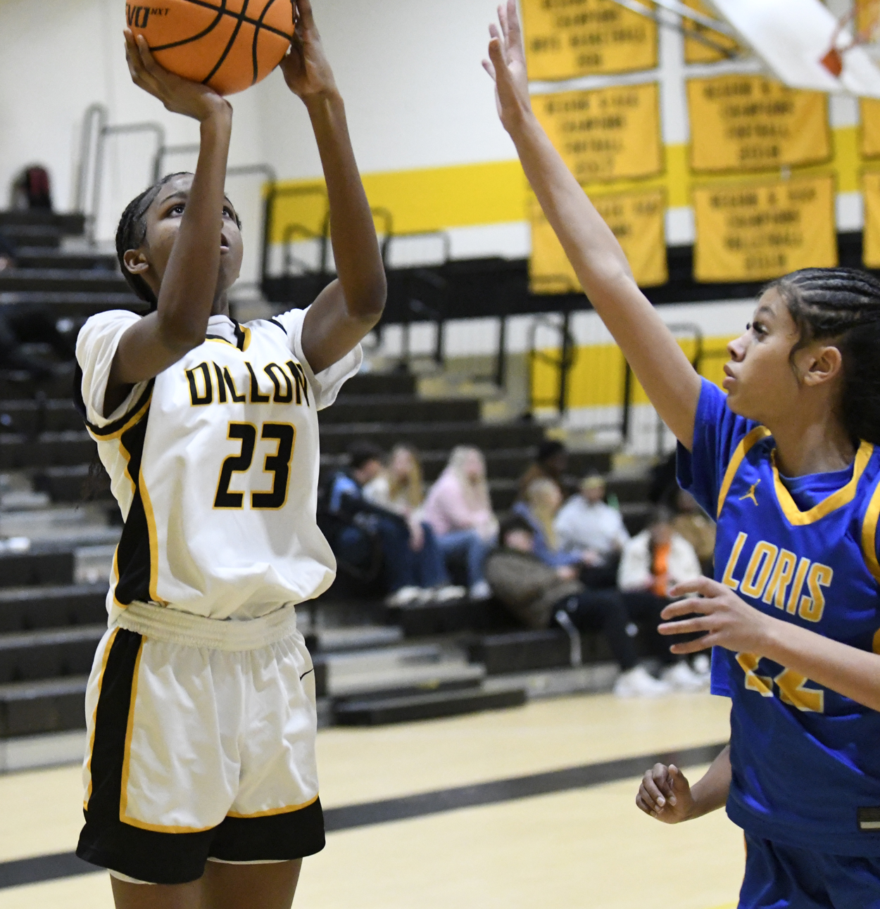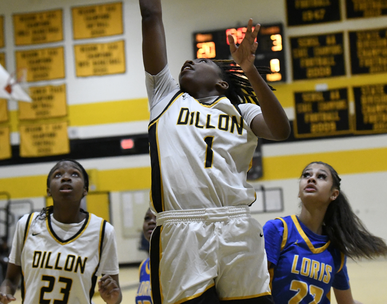 In the third quarter of play, the Lady Wildcats connected for 23 points while Loris added 8 points. Dillon committed 2 fouls while Loris committed 4 fouls.