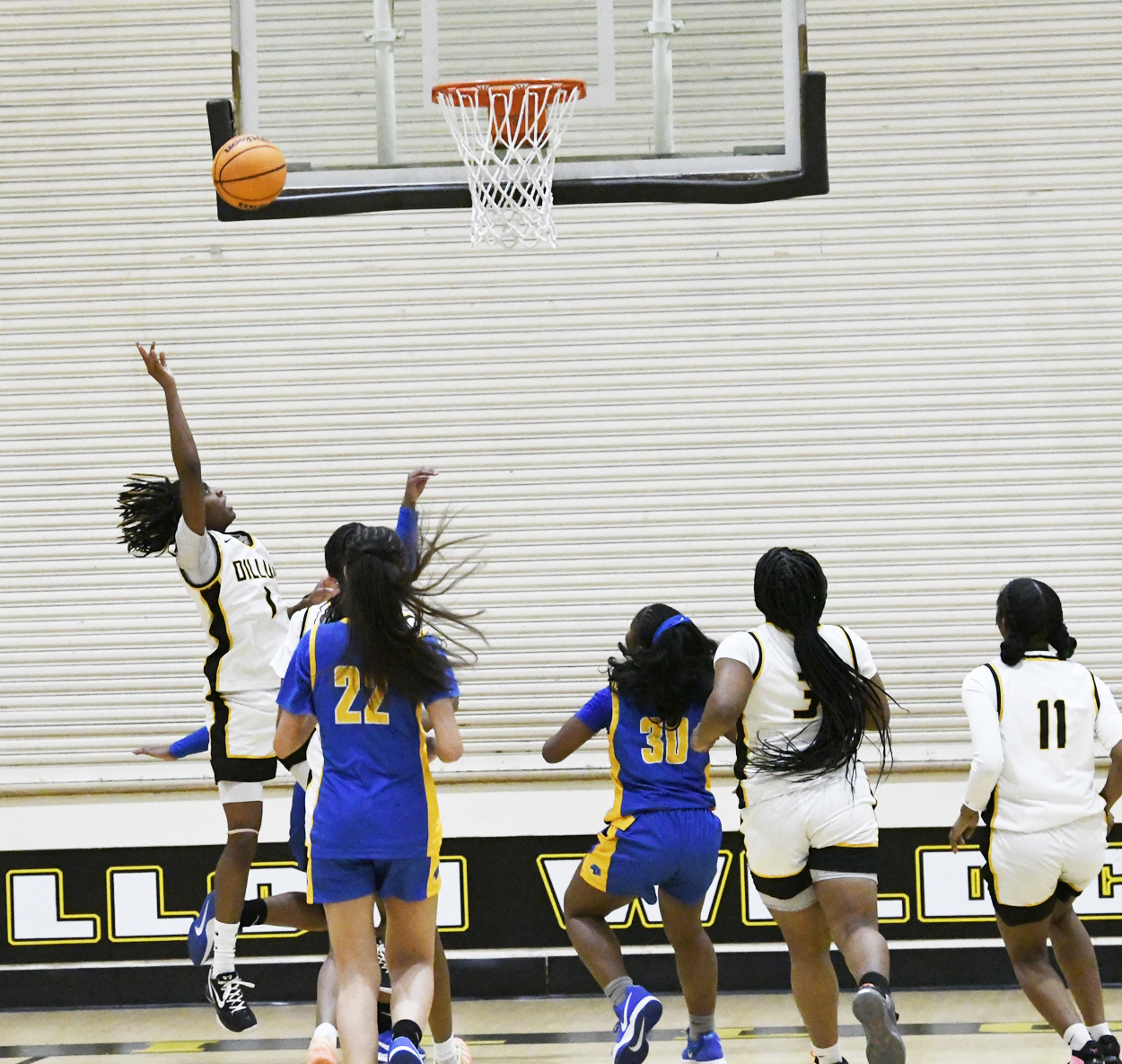 Dillon’s Treasure Davis led all scorers with 21 points. She had eight 2-point baskets, a 3-point basket, and 2 free throws. Khw-Nylahi McKinnon scored 19 points. She had eight 2-point baskets and 3 free throws. Jiana McGill placed 9 points onto the scoreboard with three 2-point baskets and 3 free throws. Zynijah Pernell sank a 3-point basket. Nylann Jones added a 2-point basket while Azyriah Ford connected for a free throw.