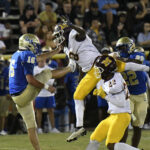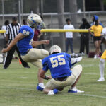 Lake View’s Caden Huggins kicked off for the Wild Gators to begin the season. Marion’s offense could not get moving and was forced to punt.