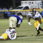 Once again, the Swamp Foxes were forced to punt. Marion’s #4, Tyrice Davis punted, and Lake View took over on their own 45-yard line. With 1:06 remaining in the first quarter, Tyrell Foxworth scored from 24 yards out to give the Wild Gators a 20-0 lead. Lucas Schamp’s PAT was good. Lake View led 21-0.
