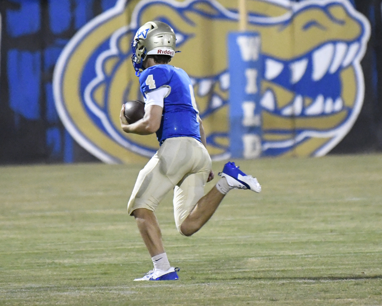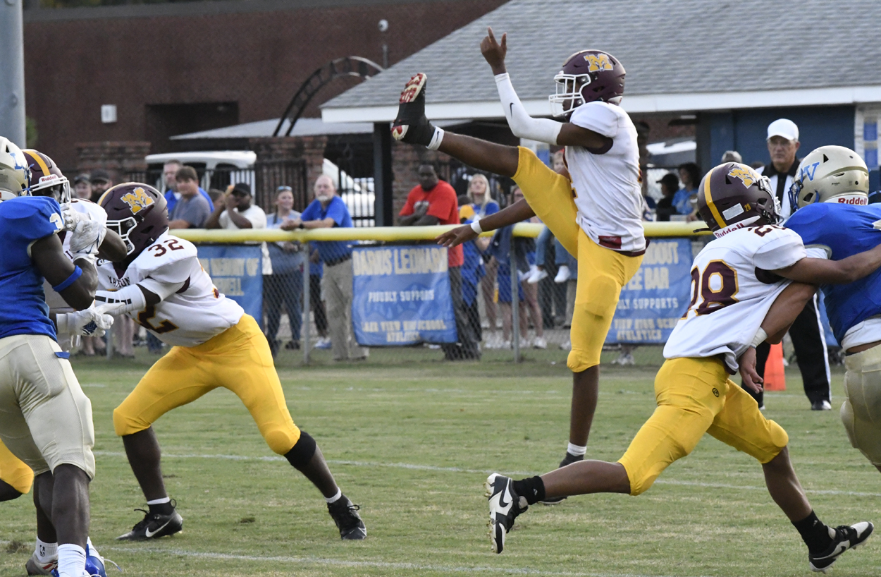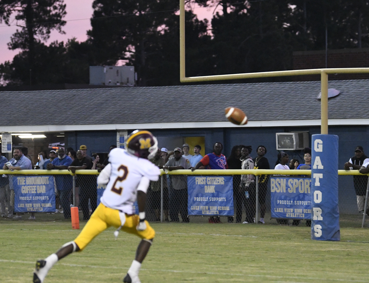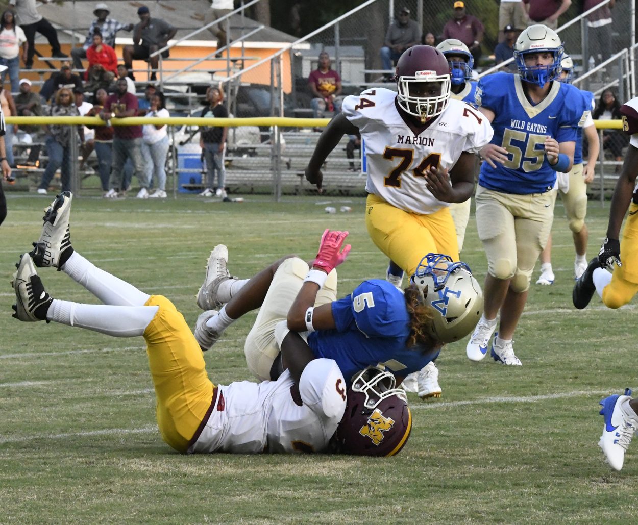 Lake View’s Caden Huggins kicked off for the Wild Gators to begin the season. Marion’s offense could not get moving and was forced to punt.
