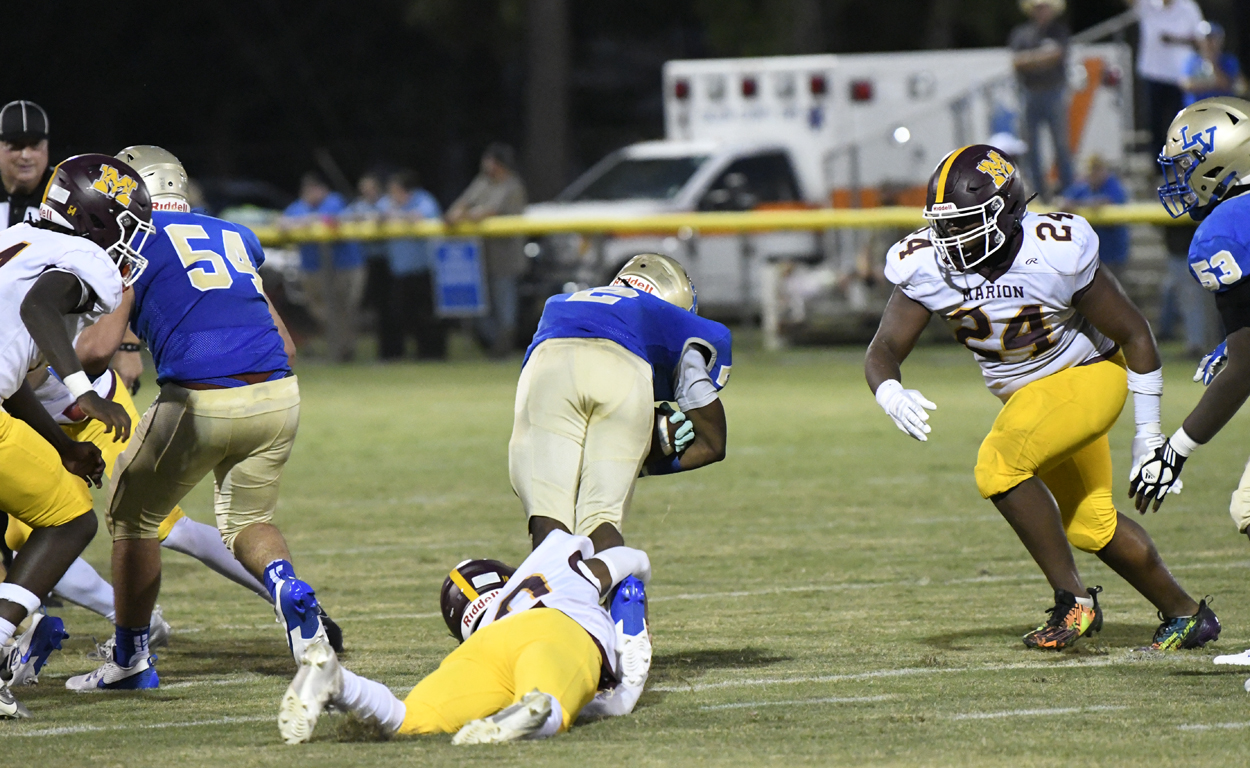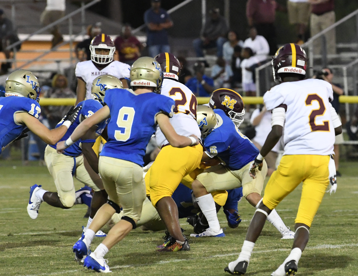 Marion’s #48, Kameron Smith-Moody, took the kick off and returned it to Lake View’s 20-yard line. Marion’s offense could not move the football and Lake View took over.