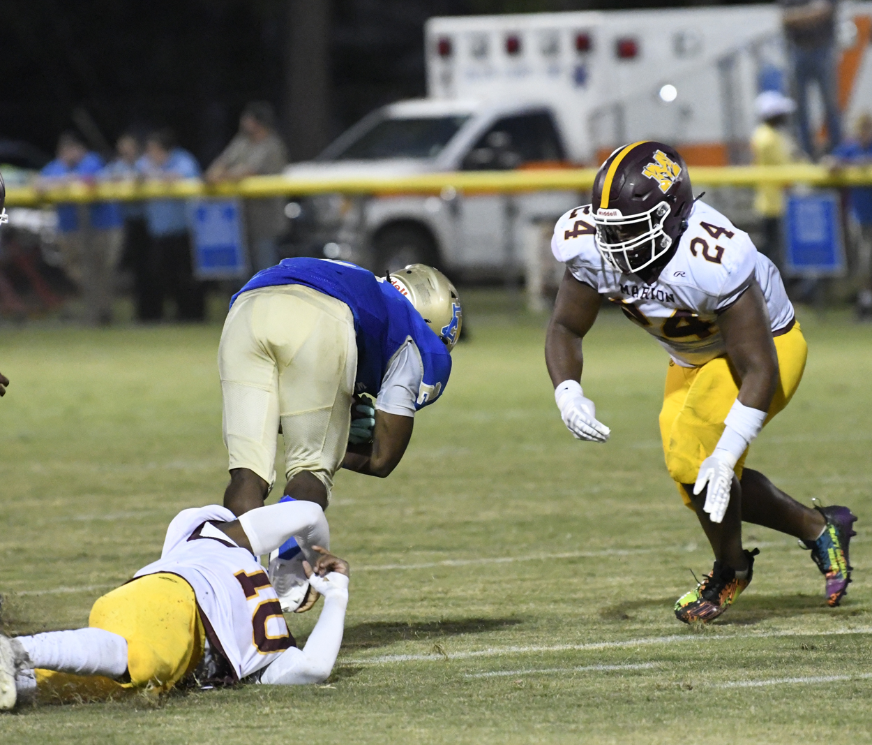 The Division AA, Region 7 Marion football team’s head coach is Brian Hennecy. Some of the assistant coaches include Demetrious Johnson, Randy Dennison, Dray Pearson, Keshawn Rowell, Yamasi Buey, and Mike Donald.