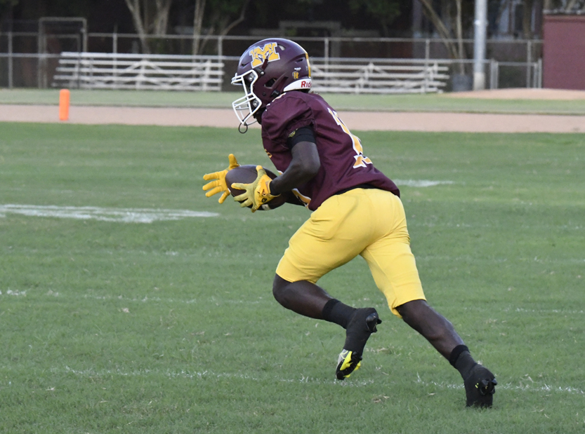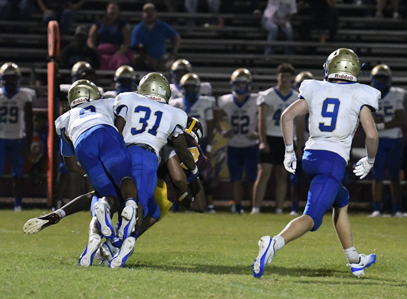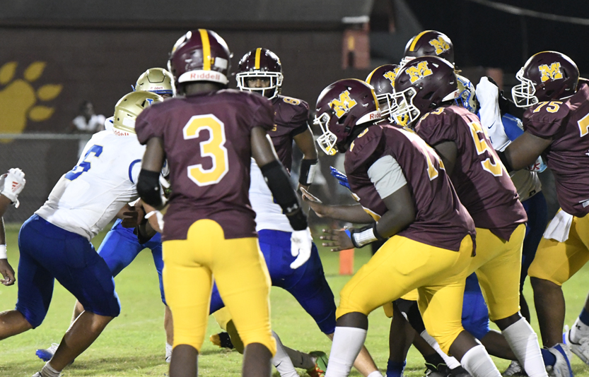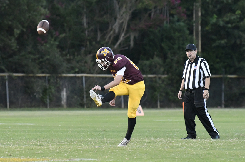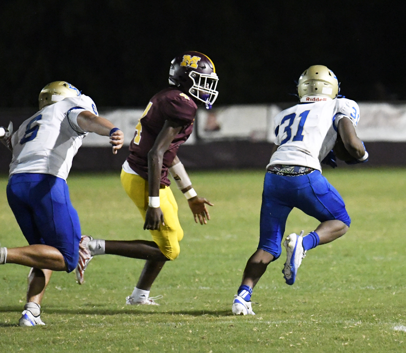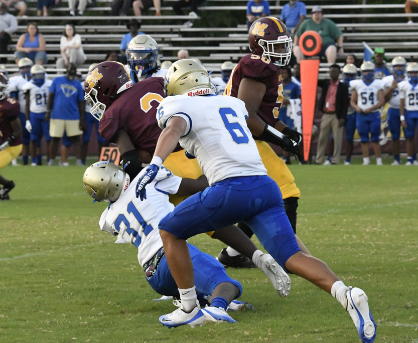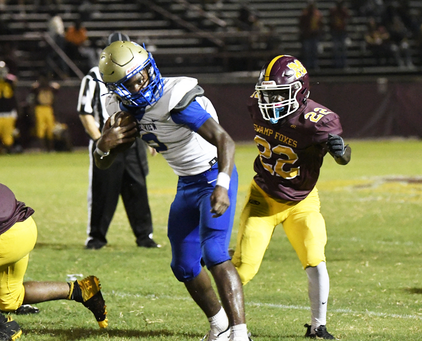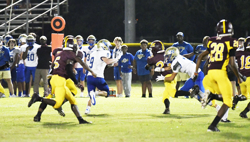 The Swamp Foxes began moving the football and managed to pick up a first down, the first of the season. With 3:17 remaining in the first quarter, Marion’s #8 rushed for a touchdown. The PAT was good by #82. Marion led 7-0.