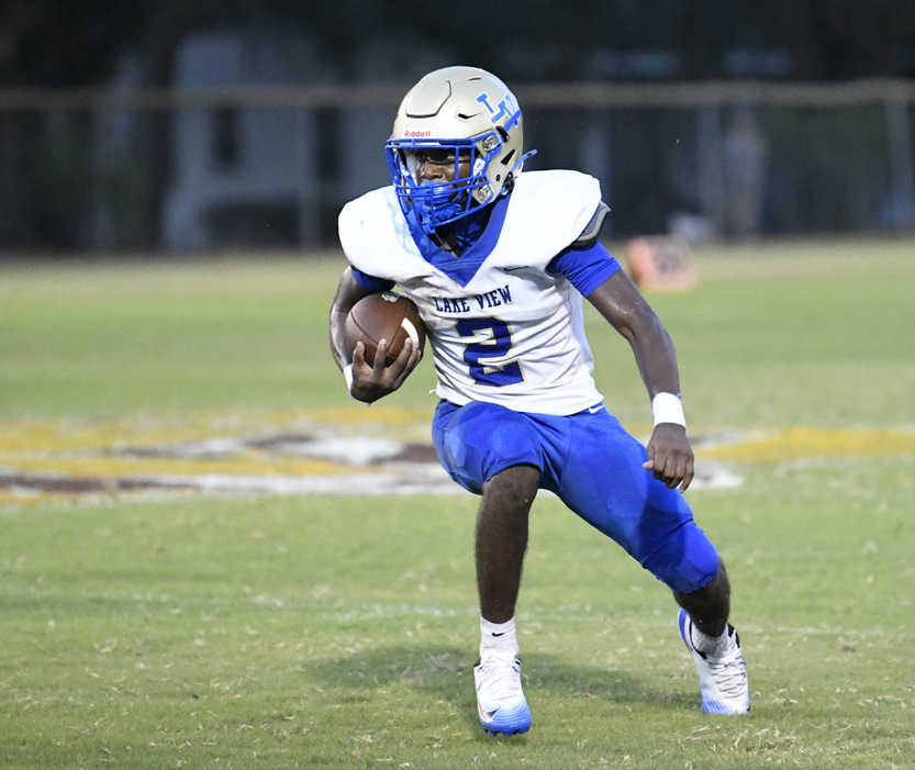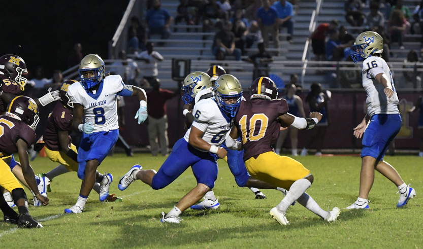 Jalen Clark picked up a first down to start the second quarter for the Wild Gators. Clark caught a pass on the next play and proved the football followed by a keeper by the Lake View quarterback, Chase Price. Once again, the play was nullified due to a penalty. With 5:40 remaining in the second quarter, Lake View’s #13 carried the pigskin into the end zone after the reception for Lake View’s first score of the season. Jalen Clark successfully completed the 2-point conversion to give Lake View an 8-7 lead.