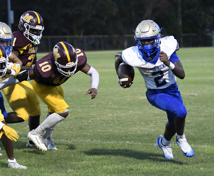 Lake View’s #21 took the kick off. Jalen Clark picked up 8 yards on the first play from offense but the gain was nullified due to a penalty. Lake View’s #13 grabbed a pass for a completion followed by Chase Price who picked up a first down. At the end of the first quarter, Marion was up 7-0.