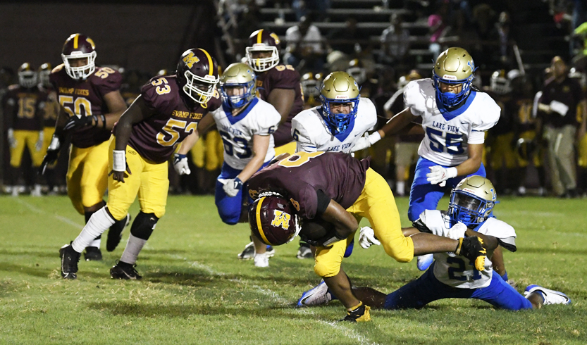 The Lake View Wild Gators defeated the Marion Swamp Foxes 26-13 in the football season opener on Thursday, August 21, in Marion.