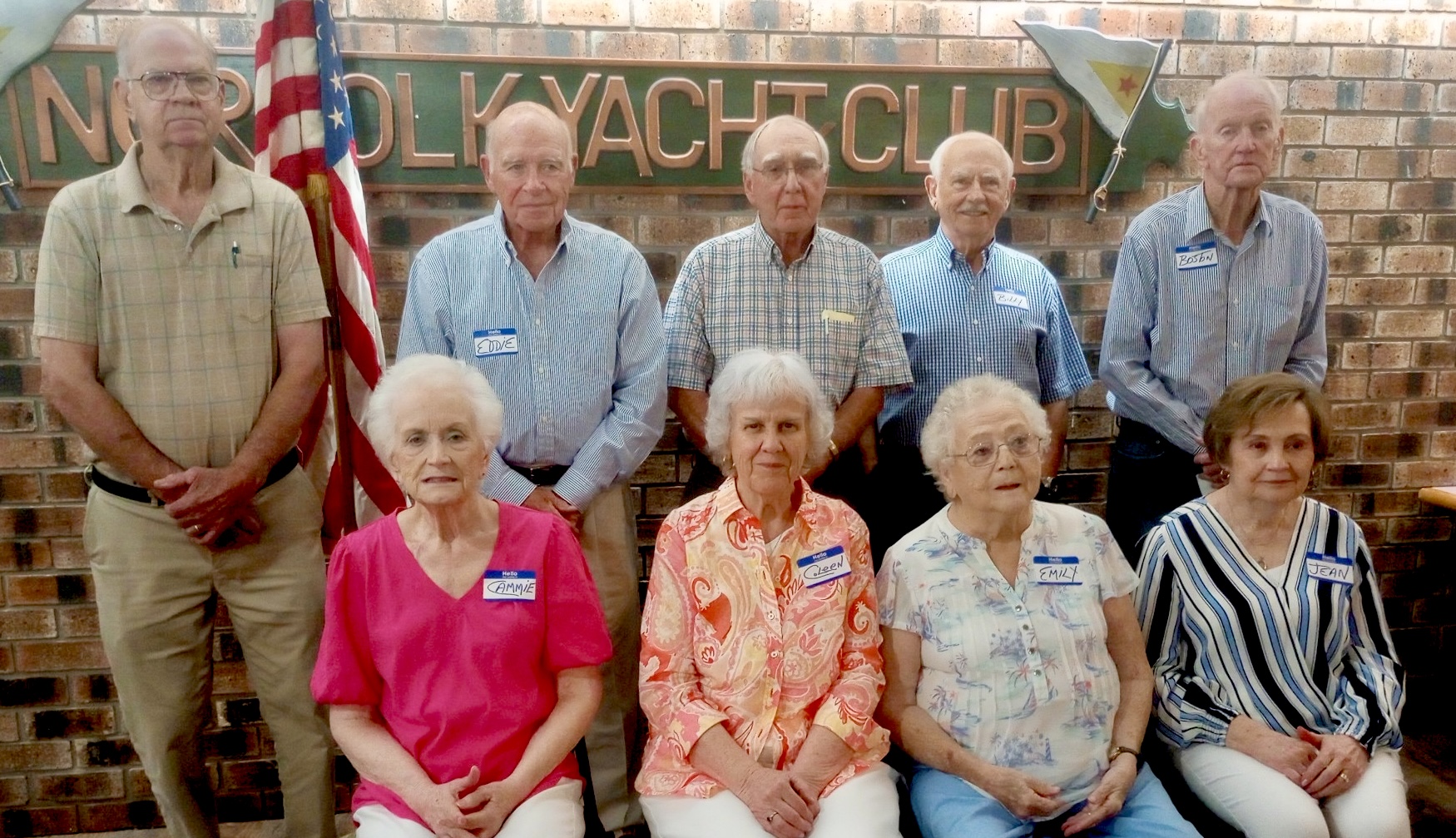 Pictured: Classmates Standing L-R Sam Foxworth, Eddie Rogers, Johnny Huggins, Billy Sanderson, and Boston Page. Seated L-R Cammie McCormick Calloway, Coleen Moore Harlow, Emily Miller Bass, and Jean Proctor Anderson. Attending but not pictured: Sandra Miller Britt.