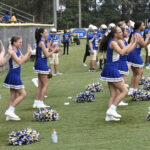 During halftime, the Lake View cheerleaders threw out small footballs to the Lake View fans.
