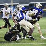 Gabriel Lee rushed 5 yards for the Lake View Wild Gators with 5:16 remaining in the second quarter. Lake View’s #11 carried for the 2-point conversion. Lake View led 20-0.
