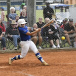 In the bottom of the third inning, Emma King led off with a triple. King scored to cut the lead to only 1. Keleigh Blackmon punched one over third base for a single, and Raven Locklear walked to place runners on first and second. Hollie Scott dropped one over second for a single and a rbi to knot the score at 2. The Lady Wild Gators loaded the bases again with only one out but could not score.