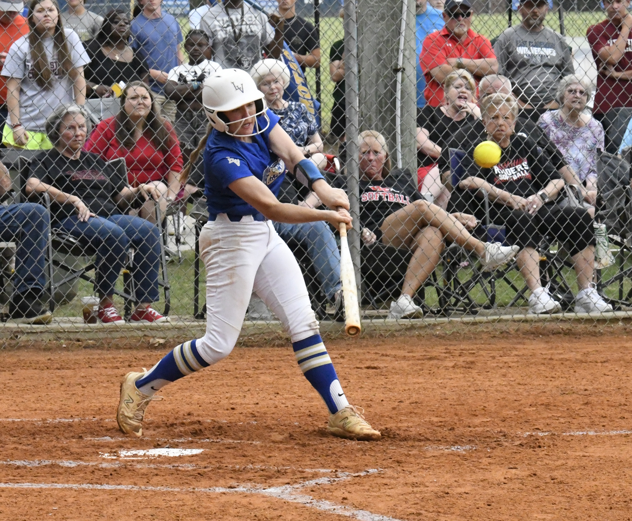 In the bottom of the third inning, Emma King led off with a triple. King scored to cut the lead to only 1. Keleigh Blackmon punched one over third base for a single, and Raven Locklear walked to place runners on first and second. Hollie Scott dropped one over second for a single and a rbi to knot the score at 2. The Lady Wild Gators loaded the bases again with only one out but could not score.