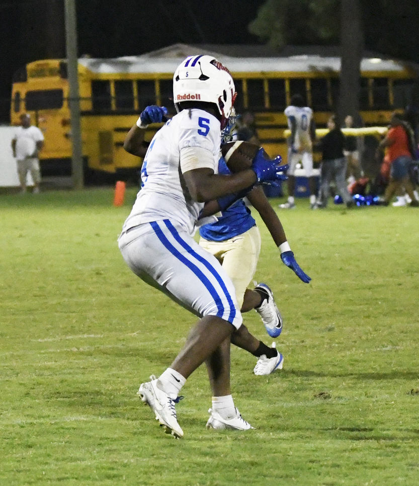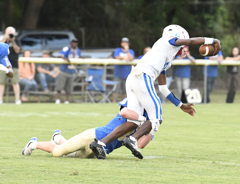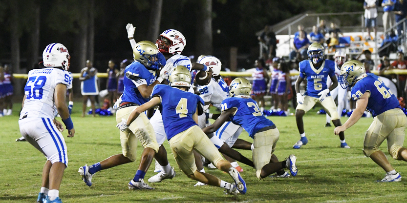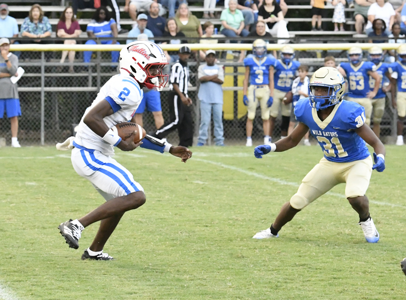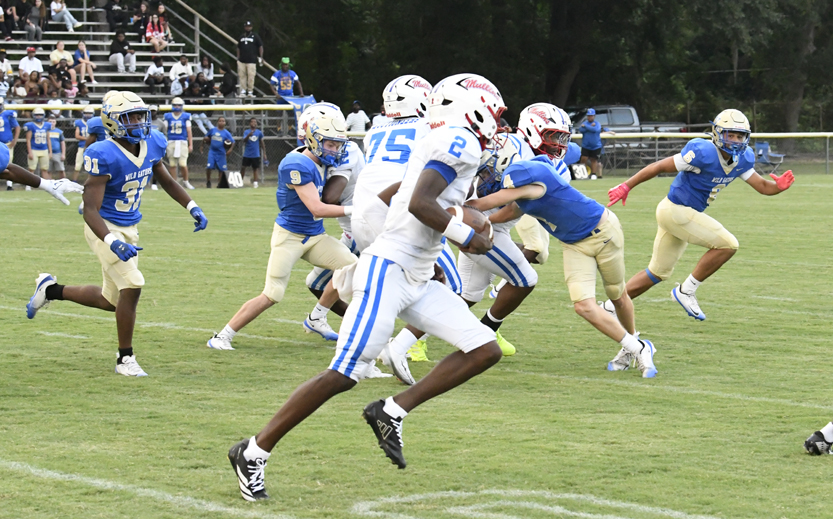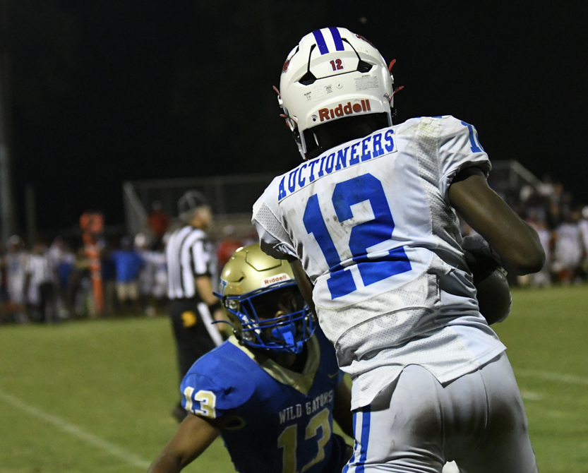 Lake View’s Chase Price kept for a 2-yard gain followed by a 2-yard loss by #11. Faced with a third down and 10 yards to go, Lake View went to the air and received a 15-yard penalty against Mullins to give the Wild Gators a first and 10 on the 48-yard line. Lake View’s #2, Jalen Clarke, carried for 6 yards. A snap over Lake View’s quarterback ended in a discussion as it was believed that no one had possession of the football when blown dead. However, the Mullins Auctioneers took over and wasted no time with Mullins’ #11 scored on a 25-yard reception. Mullins’ quarterback, Kanazzion Bethea, scored on the 2-point conversion but there was a flag on the play. Mullins attempted a pass that was intercepted by Lake View’s #9 to prevent the 2-point score. Lake View led 20 to 14 in this exciting game.