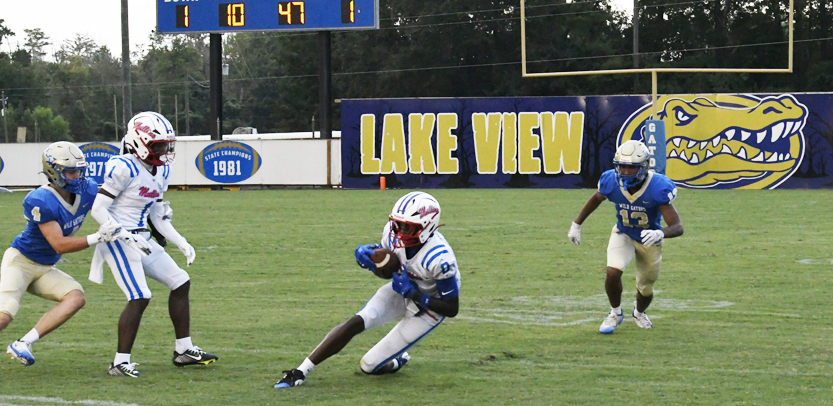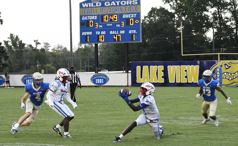 The Lake View Wild Gators won 26-20 on Friday, August 29, in varsity football action played in Lake View with the Lake View and Mullins bands encouraging the teams.