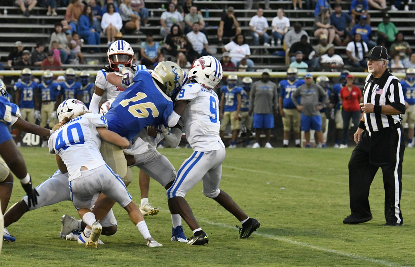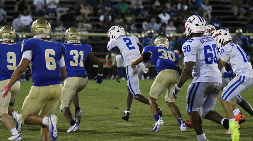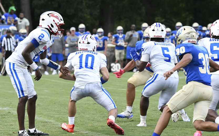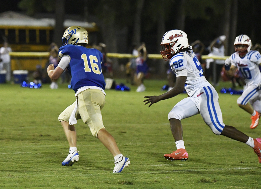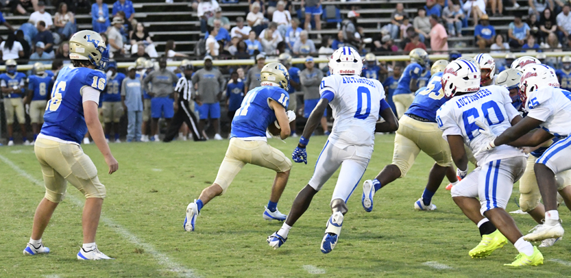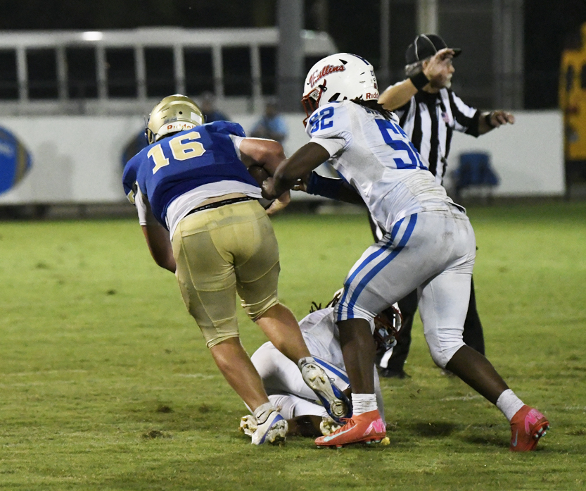 The Mullins quarterback quickly reeled off a completed pass followed by another 39-yard completion to #11 that was followed by another completion to #16. However, the Auctioneers came up short on a fourth and 2 and turned the pigskin over to Lake View.