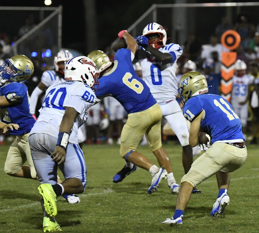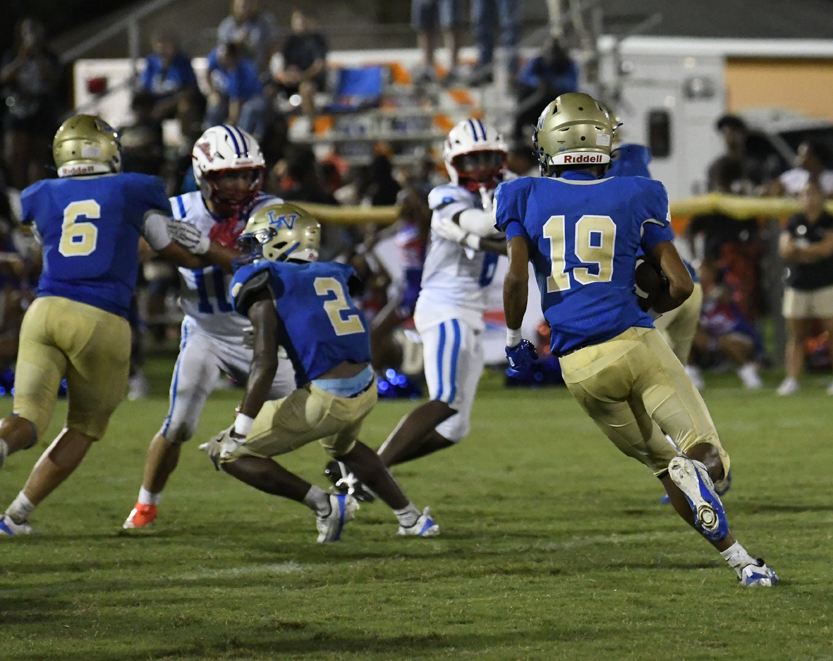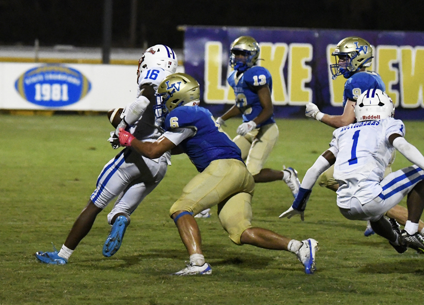 Lake View’s #2, Kanazzion Bethea, took the opening kickoff of the third quarter. The Wild Gators’ #2, Jalen Clarke, raced for a 55-yard TD with 11:40 remaining in the third quarter. The 2-point conversion attempt failed. Lake View led 20-8.
