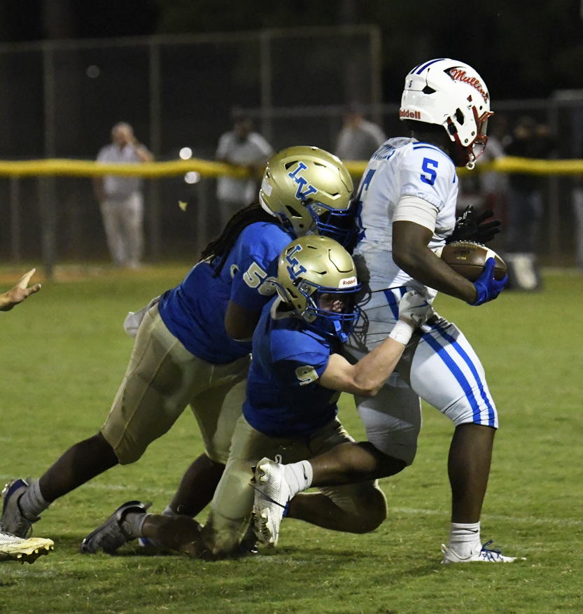 Mullins had a first and 10 on Mullins’ own 25-yard line. The Mullins quarterback kept for a 6-yard gain. Lake View’s #1 prevented a pass completion that was intended for Mullins’ #11. A reception to the Auctioneers’ #12 was good for a first down. Mullins #16 picked up a fumble, carried the football and fumbled and Mullins recovered with 3:34 remaining in the game. With 3:18 left to be played, Lake View’s #2, Jalen Clarke, intercepts a pass and returned it to the Mullins’ 44-yard line. Lake View ran out the clock to close with a hard-fought win!