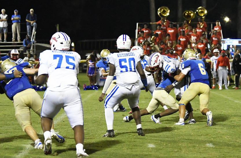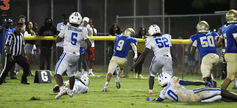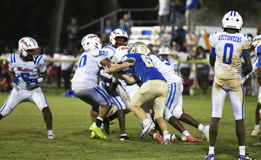 On a high snap, the Auctioneers lost big yardage, and Mullins’ #9 punted.