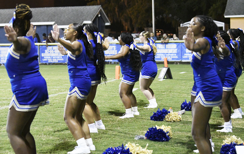 The cheerleaders and the fans cheered on their teams throughout the game.