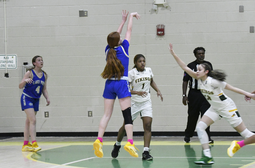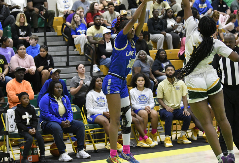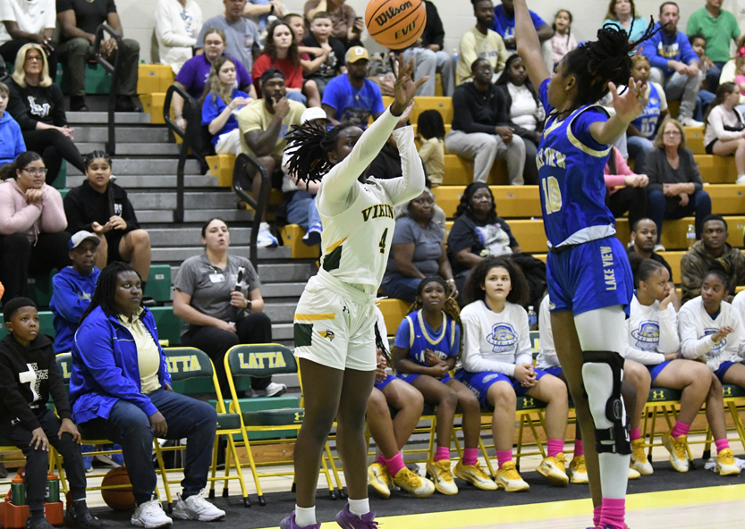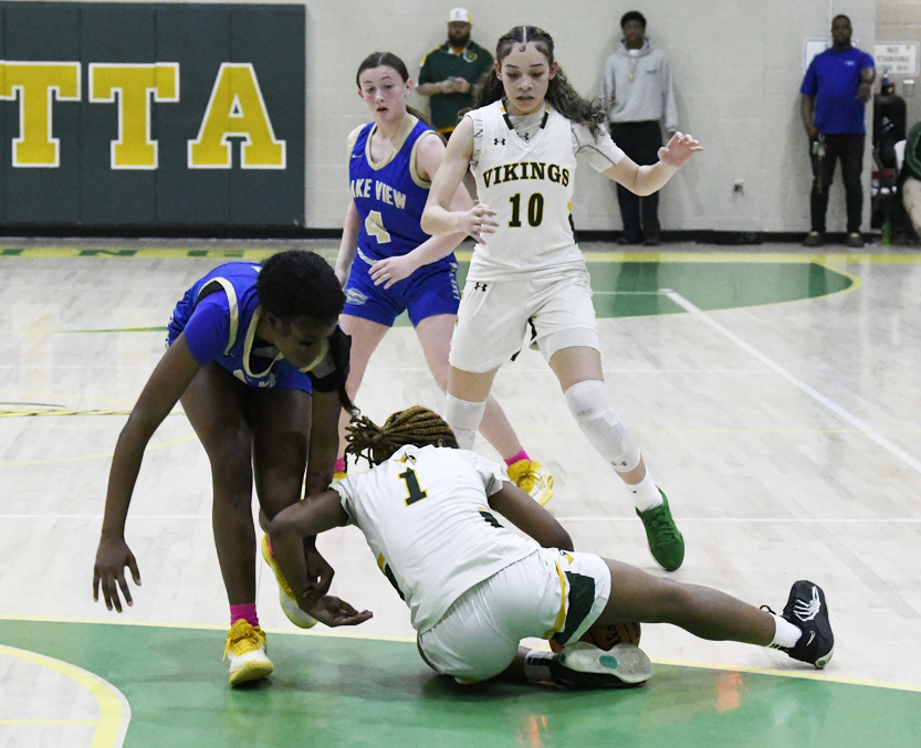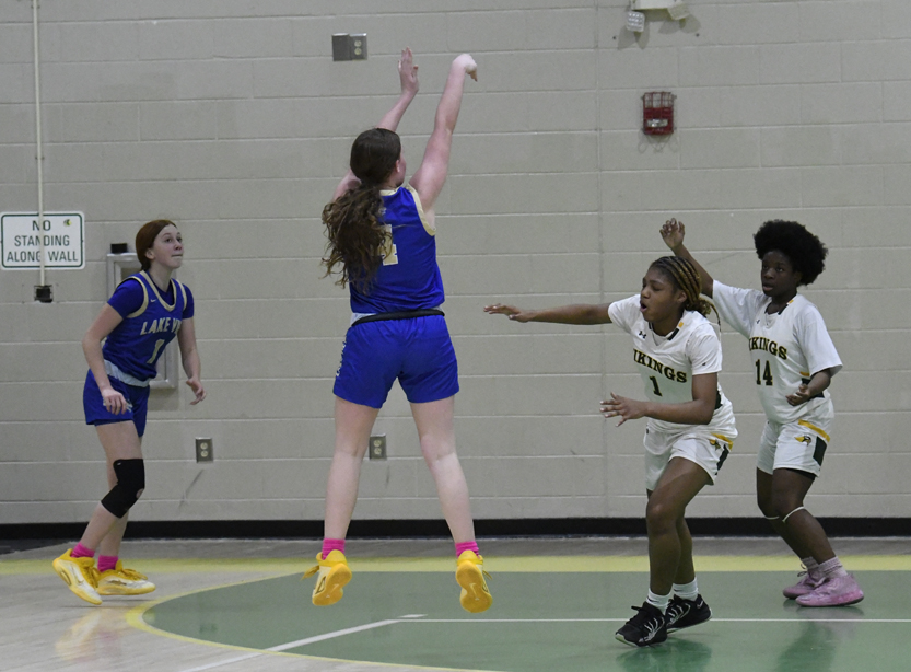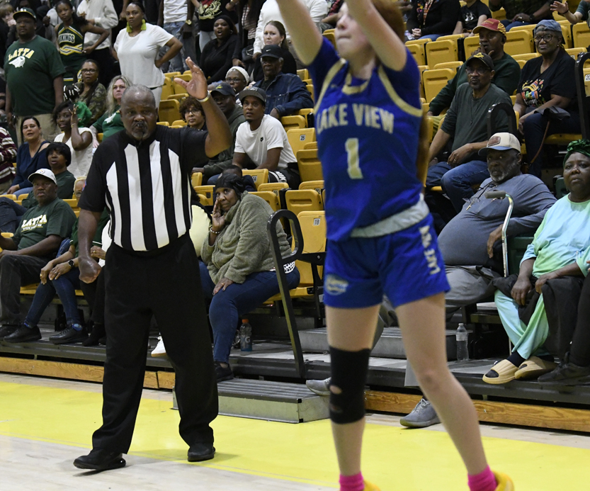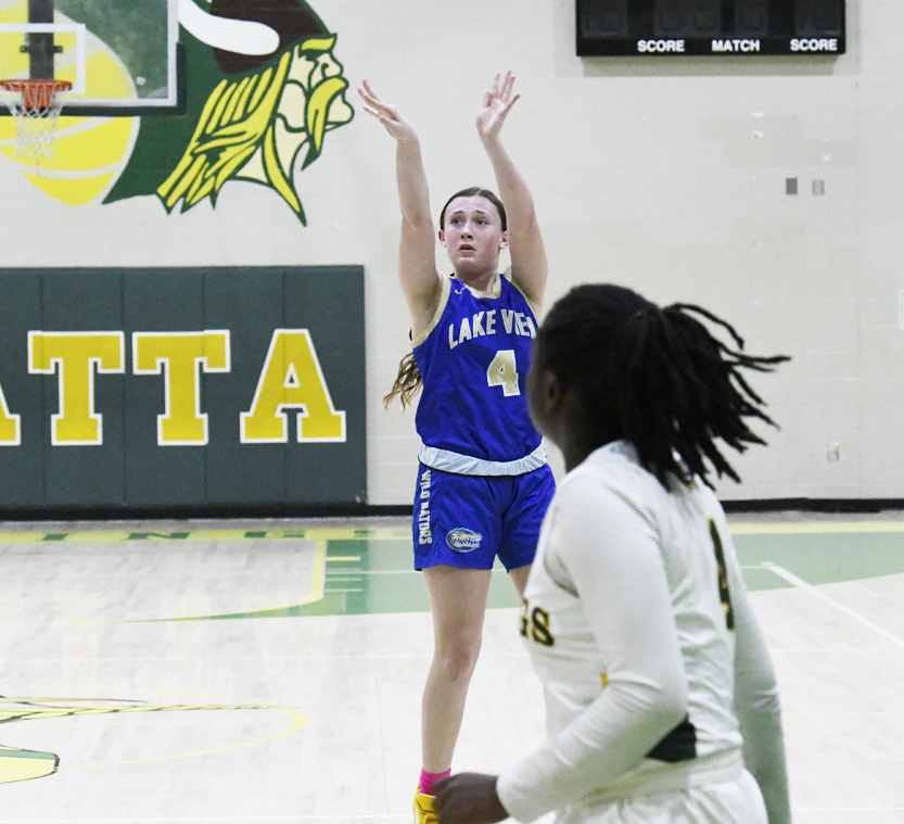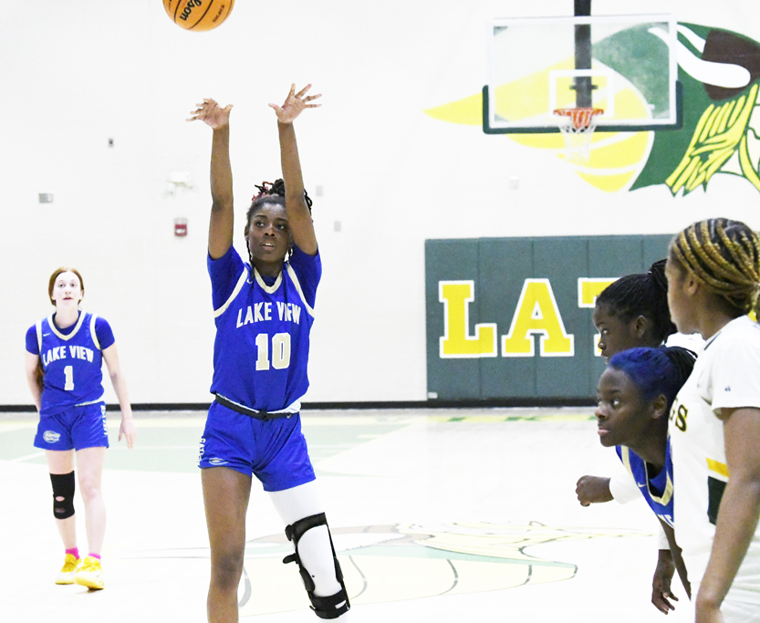 Lake View jumped out to 7-0 lead before Latta’s Kaliya Herman connected for a 3-point basket. With 4:11 remaining in the first quarter, Lake View held a 10-3 lead. Lake View’s Shayla Johnson sank a 2-point basket and a free throw to give Lake View a 13-3 lead with 3:36 remaining in the first quarter. Latta’s Aliyah Tisdale sank a free throw prior to Sophia Rogers connecting for a 3-point basket from the corner. With 2:57 remaining in the first quarter, Lake View was up 16-4. Lake View tacked on another basket, and Latta scored a 2-point basket. Lake View’s Callie Smith added a free throw. The Wild Gators’ Aura Green laid one in for 2 points. After the first quarter of play, Lake View held a 21-6 lead. Lake View committed 4 fouls while Latta committed 5 fouls in the first quarter of play.