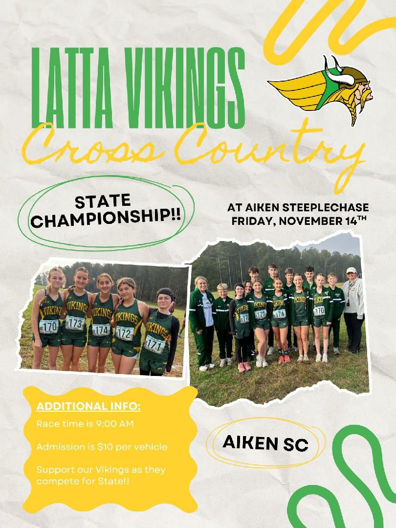 The Latta Cross Country Team competed at Newberry College for the State Qualifiers on Friday, November 7. The girls team placed 4th and the boys team placed 6th! A special shoutout to Cooper Grainger for placing 9th and Ava Huggins for placing 12th overall! These results mean that both teams qualified for the State Championship! They will be traveling to Aiken to compete for the State Championship on Friday, November 14th. Please support our Vikings and show them some love as they go on to compete for State!