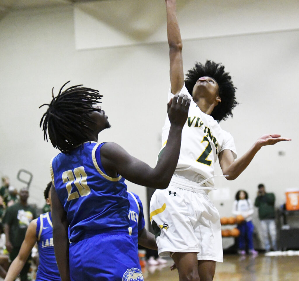 The Latta Vikings downed the Lake View Wild Gators 46-35 in varsity boys action played in Latta on Tuesday, January 28, before a large crowd.