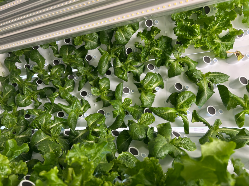 Latta High School harvested lettuce for fresh home-grown salads in the Latta Viking Cafe. The lettuce was planted and harvested just down the hallway in the Ag classroom. Mr. Aaron Miles, high school agriculture teacher, wrote a grant for a hydroponic garden, and this is the 1st year growing lettuce in the school. He states, ” The students gain hands-on experience from seedling plugs to the harvest, including checking the water ingredients daily in the classroom.” Hydroponic gardens are indoor and run on circulating water, no soil, with special ingredients and LED lights. “It’s so nice to have fresh produce for student and staff salads,” said Jenna Deaver, Child Nutrition Director. Mrs. Deaver states, “With just one harvest, the cafeterias can fix around 50 salads. Some students cannot get fresh food at home, and amazingly, we can offer food from seed to plate at Latta Schools.”