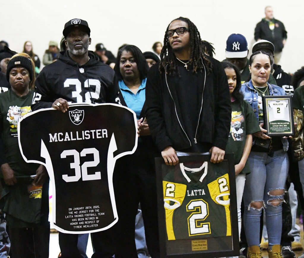 Latta High School retired Tyreik McAllister’s jersey on Tuesday, January 26, at the Latta/Lake View High School basketball game.