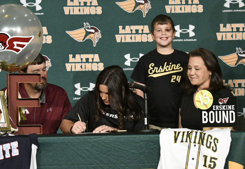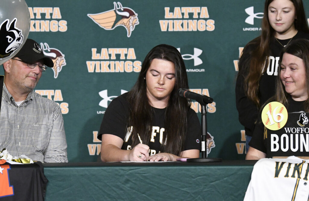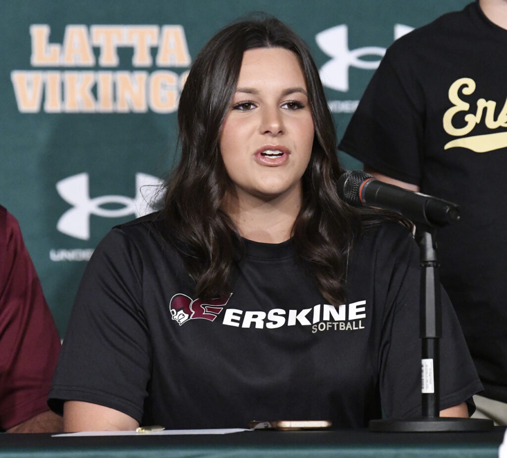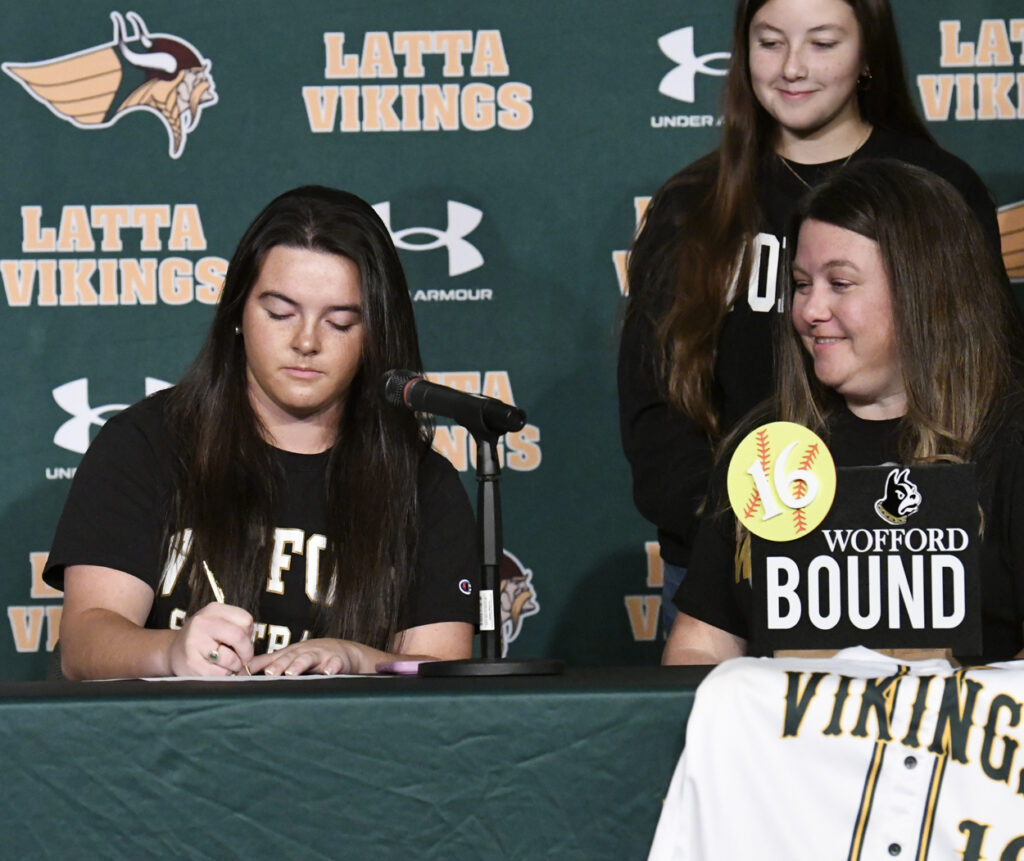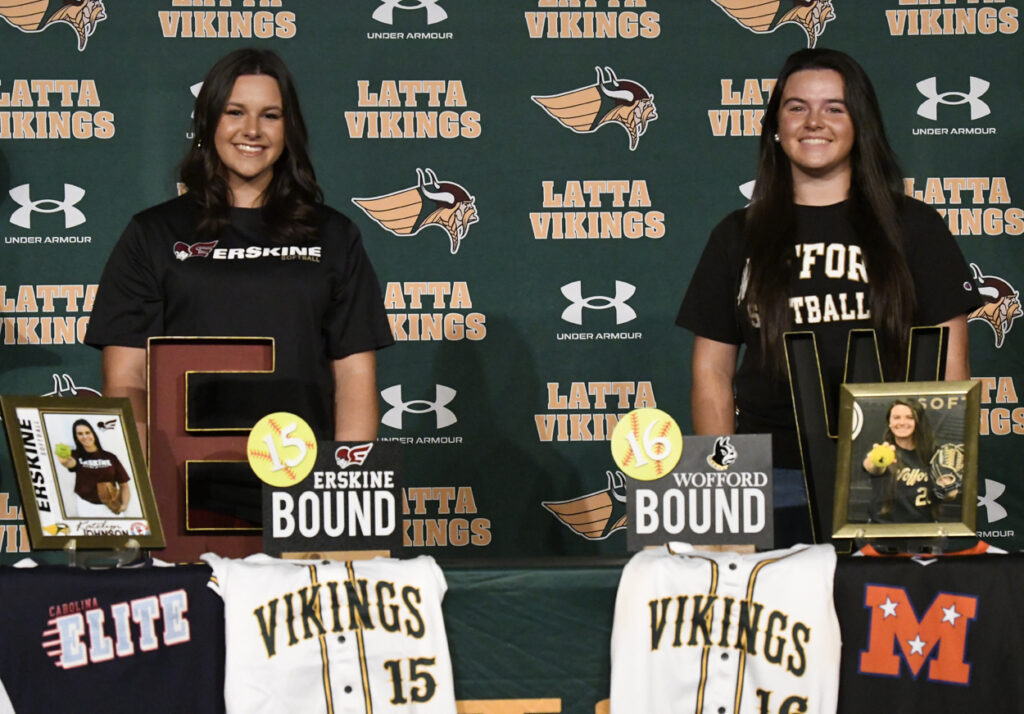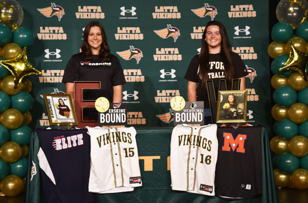 Two Latta High School students signed to play softball at the next level this Wednesday morning at Latta’s Ellis Performing Arts Center.