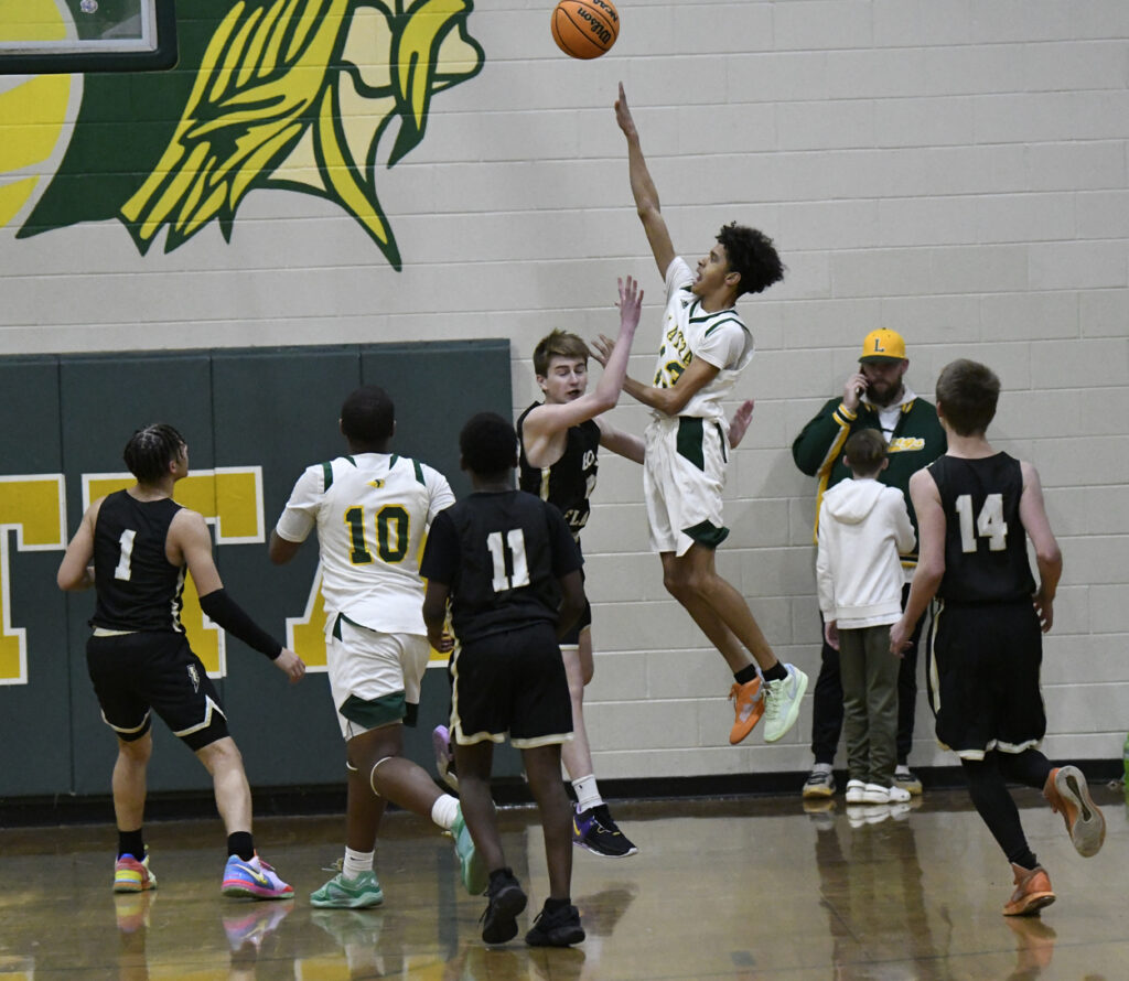 The Latta JV boys continued scoring in the third quarter with Latta’s #3 sinking a 2-point basket who quickly laid another basket in for 2 points followed by #2 for Latta who also make a layup for 2 points.