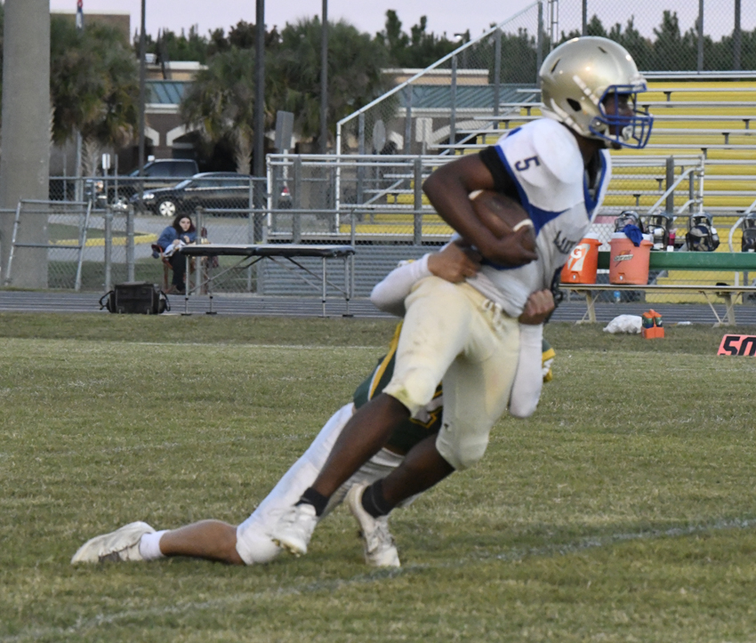 Latta’s #1 rushed for a big gain. However, on the next play, Latta fumbled, and Lake view recovered with 4:44 remaining in the first half.