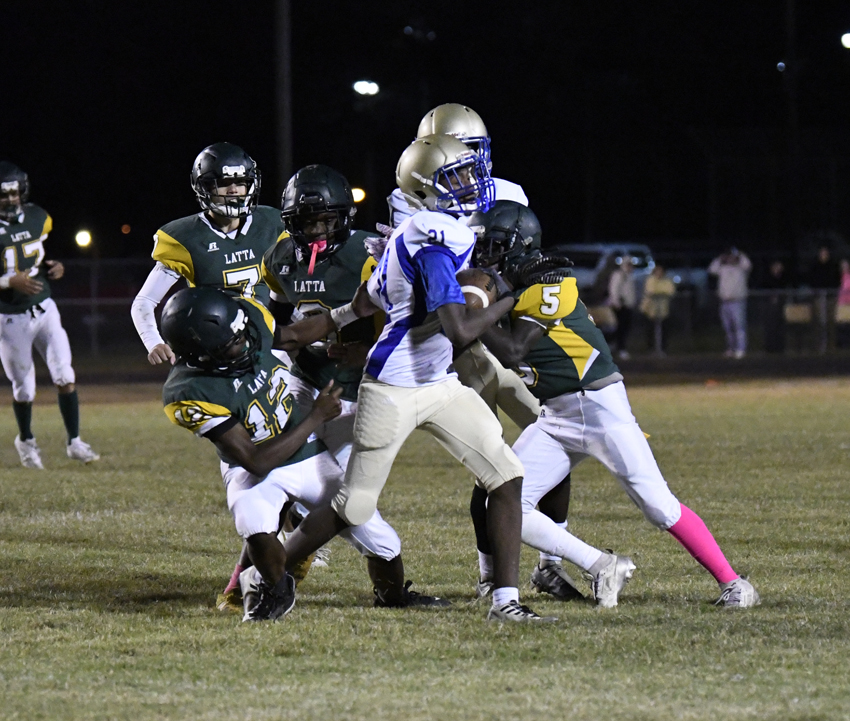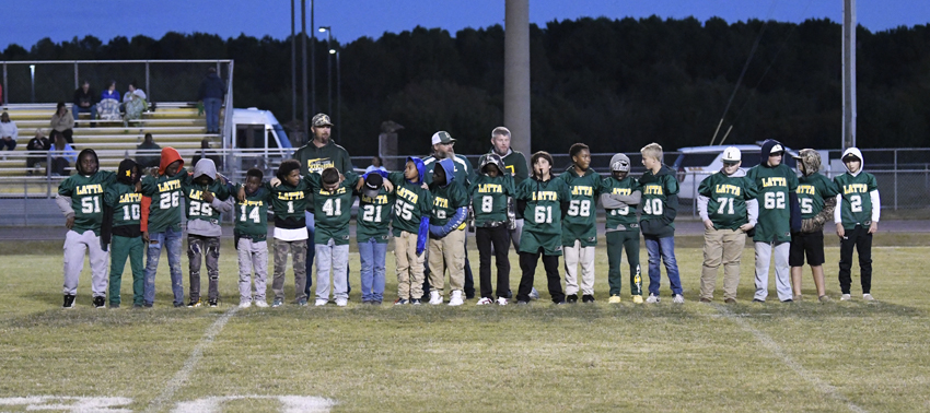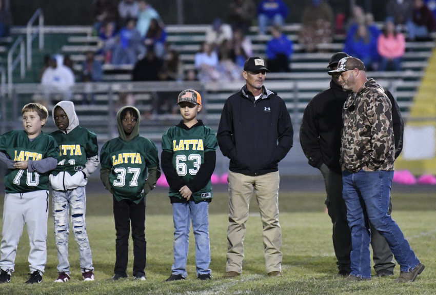 During halftime activities, the youth football teams of Latta were recognized.