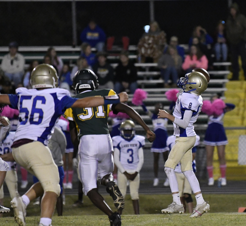 The Wild Gators ran a reverse with #5 carrying for big yardage. Lake View turned the football over on fourth down with an incomplete pass with Latta taking possession on Latta’s own 30-yard line.