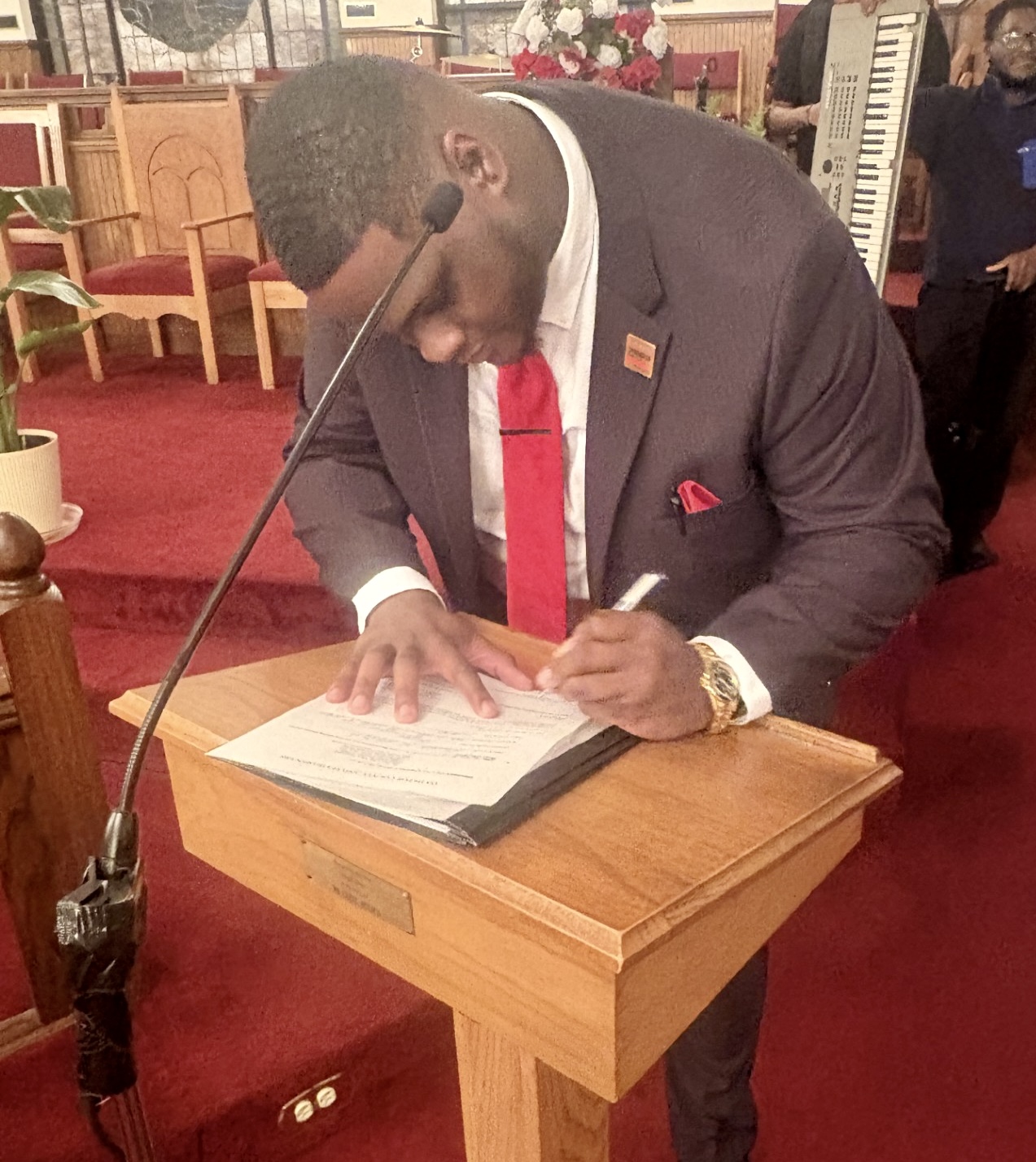 Marcus McGirt took the oath of office on Sunday at Weston Chapel AME Church with numerous people in attendance. He is the first African-American to hold the position as mayor of Latta. (Photos and Video by Chris Jackson for The Dillon County News, LLC)
