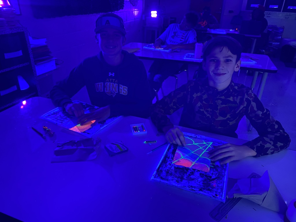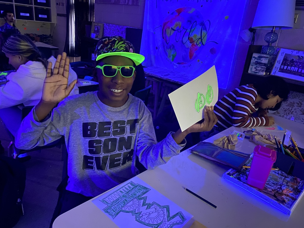Miss Rogers’ art students at Latta Middle School have begun their Glow Art Unit, exploring the use of neon paints, oil pastels, and crayons to create vibrant works that come to life under blacklight.