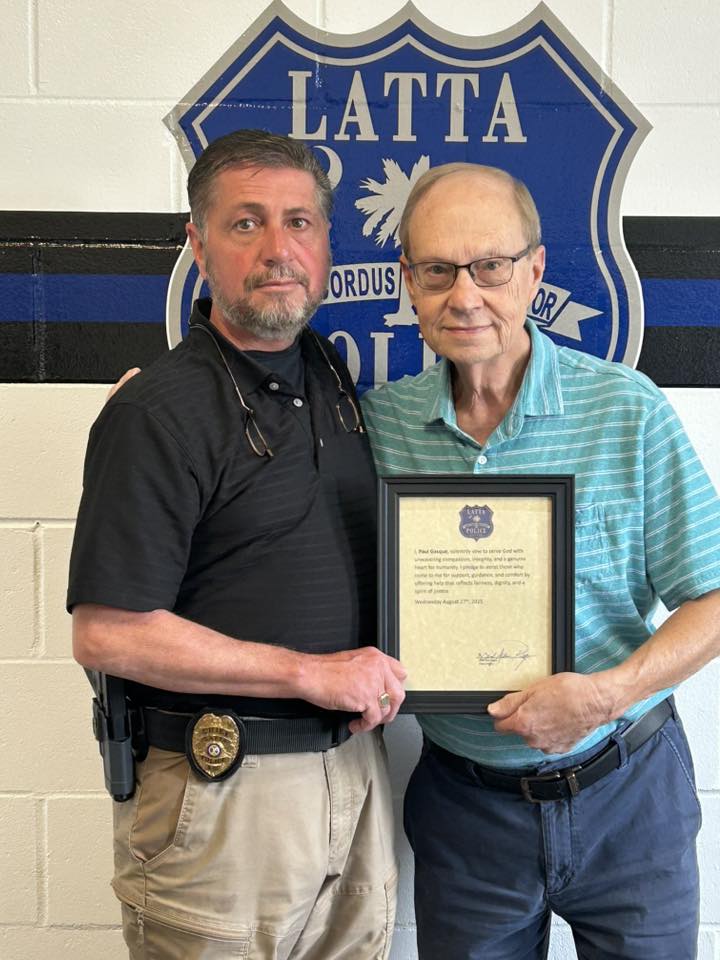 The Latta Police Department is privileged to welcome and recognize two Police Chaplains, Retired SLED Captain Paul Gasque and Bishop Calvin Pompey.