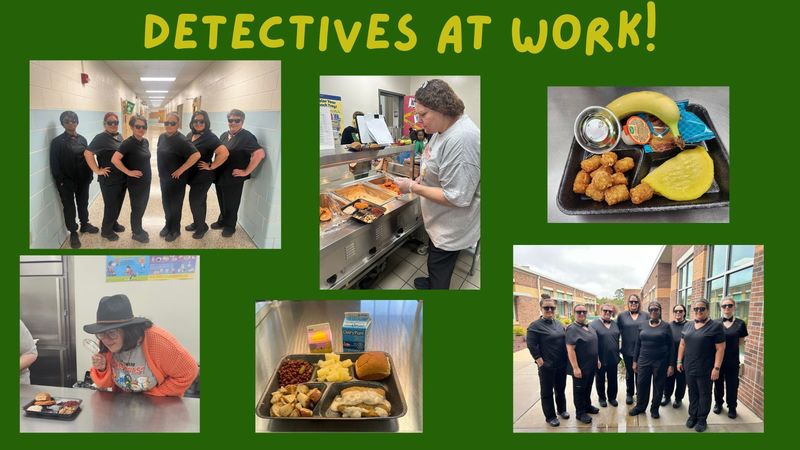 This week, the Latta cafeterias were decorated in a detective theme to help bring the mystery week to life. We even had a few “wanted” staff members for showing healthy eating habits. The cafeteria team engaged in the fun by dressing up, playing mystery music, and being healthy eating detectives, making the week interesting and enjoyable for the teachers and students. At the end of the week, we had a special detective, Detective McGruff, from the Latta Police Department join us at lunch to “detect” healthy eating. Please take a moment and look at some of the pictures that were captured having fun in the cafeteria this week.