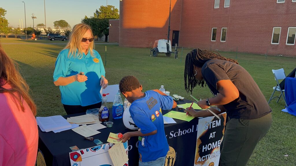 A major highlight of the night was the district’s STEM Bus, a mobile classroom designed to bring innovation directly to students. The bus was the vision of Superintendent Dr. Helena Tillar, who imagined a space where students could explore all elements of STEM—Science, Technology, Engineering, and Mathematics through real-world, interactive experiences. Families lined up for tours and demonstrations, including a volcano experiment that turned textbook lessons into hands-on exploration. The excitement was electric as students connected what they learn in class to real-life applications.