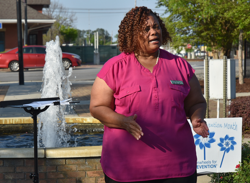 The fountain area in downtown Dillon was beautifully decorated with blue pinwheels in recognition of Child Abuse Prevention and Sexual Assault Awareness Month for the Light A Candle For Prevention Program.