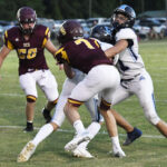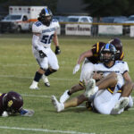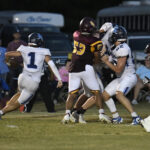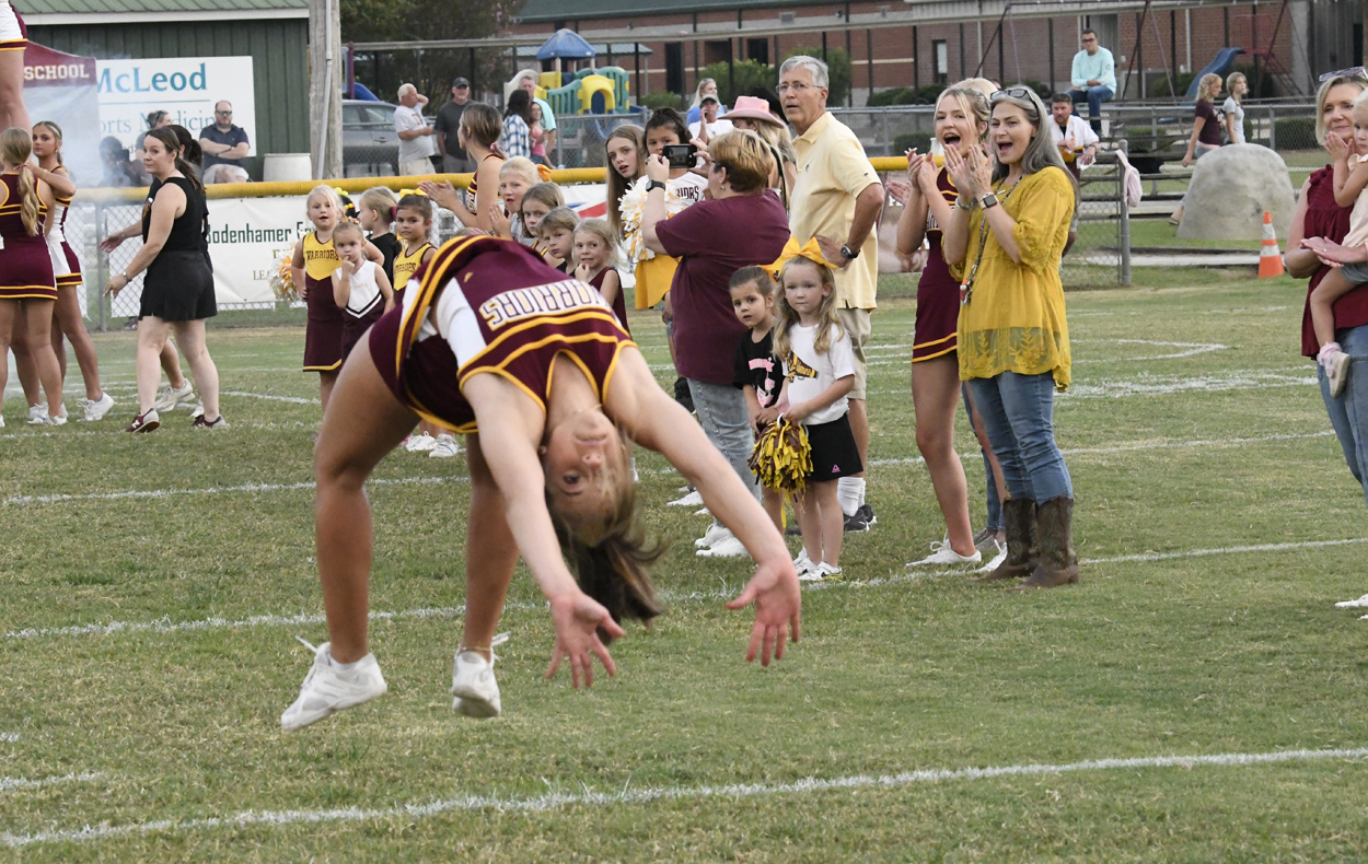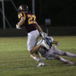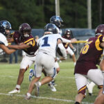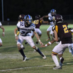 The Lee Academy offense went to work immediately moving the football. #1 carried for 23 yards followed by another 6-yard pickup before a completed pass. The Cavaliers’ #1 rushed for 4 yards and then picked up a first down on the next play. A completed pass to #7 moved the football to Dillon Christian School’s 41-yard line. #1 rushed for 6 yards. On the next play, #32 moved the football to the Warriors’ 21-yard line. From there, #32 carried for 4 yards. The Cavalier’s #4 picked up a first down. With 2:29 remaining in the first quarter, #1 scored a 1-yard touchdown. The PAT was good by #13 to give the visiting Cavaliers a 7-0 lead.